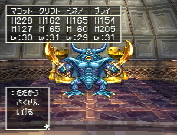 昨日31日からいまさら放置してたPS版どらくえ4やってみてます。 おわらせてうっぱらうぜ!数百円がいいトコだろうけどw (それでも案外品薄だけどね。7はものすごく世間に余ってるけど4は稀少ぎみ) でも放置してたので何すべきかおもいだせなかったりする。 なんとか思い出して攻略サイト見て進めて、とりあえずエスターク戦まで来たけど、 まだレベル低いのかかなわなーい。 「フバーハとスクルトのためミネアとクリフトがいるとよい」とか書いてあったけど ミネアはフバーハまだ覚えてないんでヤンの。 しかたなく少し稼ぎでうろうろしてなんとかミネアさんがフバーハ覚えたあと言ったけどやっぱまけ。 うがーー。 世間ではDSドラクエVとかファンスタポータブルとかだというのに!!! だれかPSPとPSuPセットでくださいな!!!只で!!! FC版の記憶もう薄いんだけど、まじんぞうってむかしからあった? なんか天外魔境にありそうな感じだけどw でんせつの~きょじんのちから~♪ でも、あ~る~く~だ~け~。 さいごとびおり。しにますよふつう。 まじんぞうの奥地デスパレスに囚われの聖職者。さすがだぜ!人間の本音! えすたーくさんこんにちはおはよう こんなすてーたす。相手HP3000らしい。一撃100が限界だよorz(倍切無しで) クリフトもはぐれ剣純情派装備なのでそこまで強くはないが時々打撃要因。 ホントは格闘姫アリーナ(Lv一番上w)連れてきたいのになー。 こりゃ無理だとわかったらすぐにたよる時の砂。 ……リセットさんごめんなさい。でも、 勇者がしんじゃお話にならないよね!あーははは。 というわけできょうも坑道奥まで行ってボコられる作業が始まるお……orz 閉所じゃメンバー四人しか経験にならないから本当は屋外で稼ぎしたいんだよなー。 PR Designed by まめの (Customized by Lost R) Copyright © [ るまぶろげーとZ ] All Rights Reserved. http://ruma.blog.shinobi.jp/ |