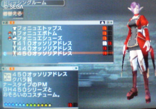 ……またお前か!(いや貼ってるのあたしなんですけどね。) とりあえずストーリー終わらせました。Lv81だっかな? かなりLv高いはずだけどMFでこの人↑と戦ったら殺されましたよ。 まースケープドール有効だったのでよかったけど。 ノスディーガ(追尾3連)とかでやればよかったのに、 レグランツで自分もろとものHP削りとかやってたからかな敗因w 結局とどめは泥団子投げ(ディーガ)だったし。 結局3種類あるエンディングのうちいわゆる「バッド」と言われるものに……。 一番寂しいとはいえお話としては納得できないものではないのだけど、 何が一番バッドかってクリア後の状態でヴィヴィアンのパートナーカードがもう使えない事。 ……はっきりいっちゃうとヴィヴィアン死亡(に準ずる)エンディングなんだよ!! そのおかげか、いままで影のうすかったルウがやたら仕切る仕切る! いやー別にルウきらいじゃないけどー。PSU本編より丸顔になった気はするけどー。 これはなー、やっぱかなしいなー。 クリア後もマルチじゃなくとも称号埋めなどで続けられるべく作られてるのに、 劇中お顔見世程度にしか出てきてないタイラーとかイーサンとかカレンとかさー、 おめーら呼んでねーよ!て人のパートナーカードももらえてるのにさー。 本作のヒロインたるヴィヴィアンがもう呼べないとは……FF7のエアリスよりマシかって程度。 (あっちは育ててるのが途中で死んじゃうからねぇw) クリア後いくつかのごく限られたパラメータを引き継いでの、 言って見れば「弱くてニューゲーム」を新たに始められるんですが……。 短い短い言われてるけど、PSUになれた者がやって50時間とかはかかってんだよ? ……いやまあ、できるだけ本編進めないでマルチばっかやってての時間ですがw うーん、他のエンドパターンは他のキャラで目指してみるかなぁ……。 それはいいとして、女子キャラでプレイの場合だけ見れるらしい? ヒューガのガールハントなどのシーンで、 本編に関係ない、とある女子だけに、なぜかボイスがある。 何でこの娘だけ特別扱いかな? 男子キャラでやるとこの娘との絡みとかがあるんかな?? まー唐突ですが懐かしいDB剣も拾ったので。(ストーリモード) ドノフ・バズさんの“DB”だっけ?モデリングはPSOに準じてました。 クリアしたら服屋にもいっせいに新製品?が並ぶ。 これはとりあえず買うやろー。黒赤も捨てがたいが赤黒で。(<わかりづら) それと、PSUオンラインでは多分この先もない服がでてた。 オッソリア=おっそろいや、ってことか! これはいいなー。色もPSPoのPMが一色ずつしかないのに服はオンのPM種以上、 渋ーい色なんかもあるし、モデリングも少しアレンジされてていいかんじ。 オンラインのほうのデータには人用としては用意してないだろうけど。 最近言われている「イルミナスのアップデート」での追加に期待したいところ。 おまけー。昨日も出てたけど。(C)SCEIだよたしか。 「いつでもいっしょ」が無料なので落としてみた、ってか いつのまにかPC版のPS@ストアが再開店したんだけど、 こないだまでは通常のブラウザで購入&DLできてたのに、 もう専用の“PSPメディアマネージャ”でしか使えなくなったり、 そのメディアマネージャがMP3のタイトルすら文字化けしてツカエネーとかだったり、 (これ治しかたあるんか?Q&Aとかにも何も触れてないんだけど。) LISMOのアレ(ご存知auのケータイ用メディアユーティリティね)にしろ、 SonicStage(ソニーのメモステ機器向けメディアユーティリティ)にしろ、 何でこういうのって使いづらいとこばっか前面に出ちゃうんだろうねー。 DLの購入権の管理とか、うちがうちが、じゃなくてブラウザで一括管理してくれ! (あたしの今のケータイとか音楽入れにも2通りの方式を個別に採用してて尚わかりづらい!) ……うちのLISMOは音楽CD直接読めませんが何か? (WMP取り込みでWMAファイルにしてから読み込ませてたけどめんどくさくて) PR Designed by まめの (Customized by Lost R) Copyright © [ るまぶろげーとZ ] All Rights Reserved. http://ruma.blog.shinobi.jp/ |