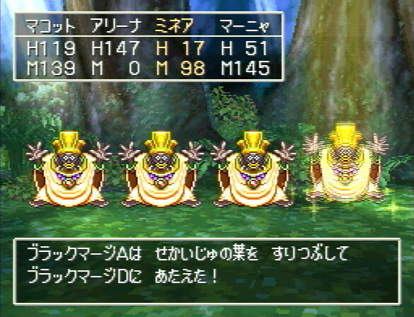 なんか忍者カウンター最近管理画面に入れないとか不具合連発みたいで それを直した影響かウチのカウンターリセットされた!とばっちり! それはそうと最近忘れていたどう森e+。 GBA←→GCの接続ケーブル(正式名忘れた)が中古結構高いのに 300円で売ってるトコあったので買った。 ちなみにゲオだとどこも千円売り。定価と買わんなくね?定価いくらだったっけ? 昔ポケモンボックスについてたのとかFFCCとかにもついてたりとか、 それ以外に互換品を安めで買ってたのとか色々あったのだけど全部なくした! それはそうと(こればっか)中古で買ったe+にはカードリーダーがついてて、 まーでもこの中古品には本来標準添付だったカード数枚はついてなかったのだけど、 昔ファミ通についてた付録のカードがまだあったので読み込んでみた。 コイツが入居(引越)してきましたorzふぁみつーじゃまだ連載やってるみたいだね……。 他にミニゲームのカード一枚と、とたけけのが一枚あったけど。 みにげーむそういや標準で3種くらいはいってんだけど、 ためしに中ドッヂ(なかドッジ)をGBAにDLしたらキャラがちっこくて可愛かったw 音楽の雰囲気もしっかりどう森だったしな。 ってかこれって一人でやるのにみんなと遊ぶってタイトルなの……? その画像はGBAなんで撮れてません。ざんねんでしたー。 虫取り網で頭は炊いたらこんな反応。も少し叩くとすごい目になった。 どらくえ。 エスタークのあとガスを入手して気球を作ってもらった。はたらくひとたち。 もちろんあたしらの時代は「はったらっくおっじさん♪こ~んにっちっわ~」だったんだけど、 時代と共に勤労女性に気を使ってそんな風に。タイトル変えた後気球は出てたっけな? 大仰な外輪山の中に入るとそこは世界樹がぽつん。 世界樹の下には門前町。(なんか変か?) お前もモンスターじゃろグラフィック的に!って感じの人が居た。 樹に登りまくりんぐ。 助けを求めていた翼の折れたえ~~んじぇ……天空人をたすけて、 (3人パーティで来いとか注文つける余裕はあるのにな。自力で降りて来いよ!) その人の言いなりに天空のつるぎもゲット。つるぎだった?けんだった? てんくうしりーずあつめて天界まで連れ帰って頂戴!!ってどんだけ我侭か。 まーしかし他にどこ行くべきか見失って、気球でさまよい続けてたけど、 一回降りたのに見逃してたマップ中央にぽつんとある岩礁に囲まれてて 船の付けられない島が実は気球から降りると広いんですて感じで、 そのどっかに天空の塔とかあるらしい。まだ町にしか行ってないけど。 これどこで出たのかメタルキングトリオ。倒せず。 こいつらうざかった。世界樹の葉を仲間同士で与え合うの。 早くおわらせないといかんなー。FC版になかった追加ダンジョンもあるのに……。 ピサロさん待っててね!……一回倒すけどね! PR Designed by まめの (Customized by Lost R) Copyright © [ るまぶろげーとZ ] All Rights Reserved. http://ruma.blog.shinobi.jp/ |