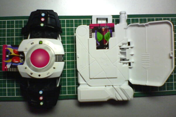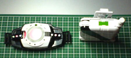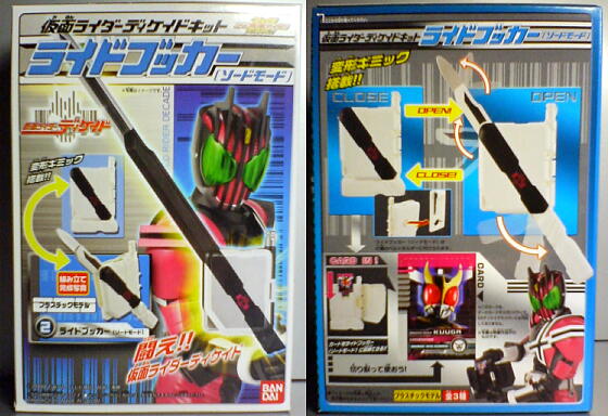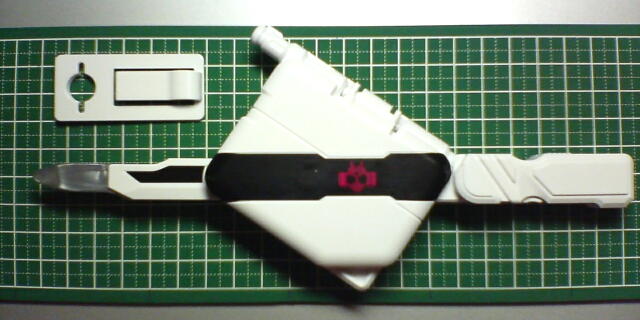 仮面ライダーディケイドキット第一弾の2、ライドブッカーソードモード。 箱裏にはクウガのミニカードがついてました。 これ第2弾(4月以降くらいの発売みたい)でもつくかなー、っていいたいところだけど、 2弾ではもう第2ライダー(小野寺クウガじゃないよ)の武器が出るみたいなので、 ライドブッカー用のカードがもうつかない恐れも……。 箱はブルー系。後一個買ってないブッカー銃はオレンジ系です。 なんでソードを買ったかというと、 ブッカーがひらく! 銃のほうはこのギミックがないみたい。その代わり長細い弾丸射出できる仕様。 (その機構仕込むため開閉はオミットされてる。銃身側がヒンジだから。) 正直、このソードのほうでもグリップ半端な角度にすればぱっと見は銃モードw ぱーつこんだけ。蓋があるので意外と多いのかも。 ソードフォーム、じゃないソードモード。 サイズわかるようにゲージ付きカッティングマット上で。 上の四角いのはベルトクリップ。 ブッカーとして蓋開閉して使うにはいいけど、 武器としてサッと取り出すには固定され過ぎかも? ディケイドライバーと対比。高さがあるのでサイズは底辺部で見てね。 こっちのほうがきれいに見えるけど底辺部がわからないもので。 見てのとおり銃口はあいてません。 ミニカード交換してみたり。 2枚は重ねられますが3枚はぎりぎりな予感ですよ。 つーことで、とりあえずブッカー銃は見送り。 もし安くなってたら、箱裏のミニカード(キバ)ほしさに買うかもw でもそういう場合大概持ってるほうが売れ残ってるんだよね経験上。 PR Designed by まめの (Customized by Lost R) Copyright © [ るまぶろげーとZ ] All Rights Reserved. http://ruma.blog.shinobi.jp/ |