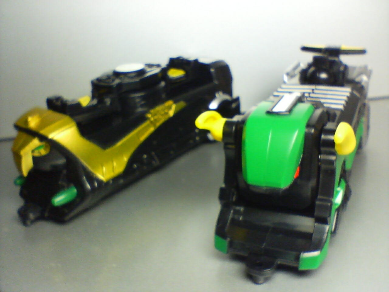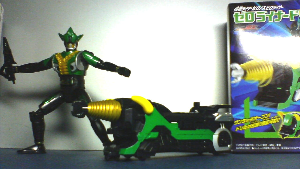 一回書いたの例の回線不良でUPできずに電子の藻屑……orz テキスト保存しようか一瞬迷ったんだけどな……立ち直れるまで、 しばらく画像のみで我慢してください(<充分だという説も) チェンジライダーゼロノス!かっこいい! これは軽装のアルタイルフォーム。電王のプラットフォーム的なものですね。 チェンジライダー電王(2フォーム×2種。今度ウイングf.もチェンジ無しでw出るらしい) と比べ、足首と上腕に可動が追加されていい感じに!接地性抜群! 残りの2種はゼロライナーのドリルとナギナタ。牛顔がドリル鳥顔がナギナタ。 ゼロライナードリルはスイッチで牛頭が縦回転、ドリルと入れ替わります。 箱にはドリルが回る!と書いてあるけど手で回せるってだけw ゼロライナーナギナタはサイドのスイッチで天井部分のロータがぶんぶん回転。ほんとブンブン。 端っこの小翼は手で開いてね。さすがに。 ゼロノスベガフォーム。こっちがマスクドフォーム(違)です。 肩の指バルカン(仮名)が黒なのが残念無念。ベルトもVモードにはなりません。 一応撮ったけど地味なのでサムネ無しのvegaせなか。マントは布。 ♪ふぁはっはーーはーんふーふぁーふぁーん(?フジツウの提供のつもりらしい) 明日は今日買ってきたけど組み立てに時間食いそうなゲキファイヤーの合体の風景をお送りします……。 ……まー結局なんだかんだとそこそこ文章もつけたからいいか! PR ※ Comment