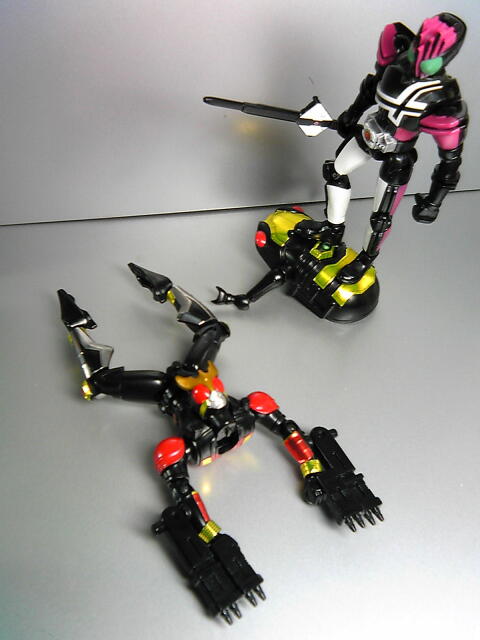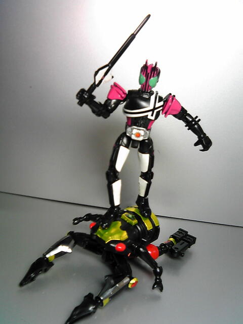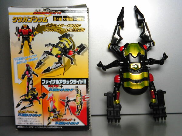「よーし今日から超変形かー頑張るぞー!!」といいつつ、 一回しかクウガゴウラムやってない小野寺ユウスケ。 めっきり劇中でも変身しませんね。 それどころかG3装着員とかやってるしね。 クウガとなぞの生き物。 FFR玩具ではクウガの腕からはずせないらしい変なパーツはこちら食玩では外せます。 てか外さないと可動仕込めないため変形できないのだ。 リュリュリュリュウキーもあるよ。 後編はNo.1:クウガゴウラムと2:リュウキドラグレッダー。 ディエンドによってキバアローは2回目の出番あったというのに。 亀仙人ライダーになって変形準備完了。 ……といいつつ首引っ込めるにはいったん甲羅外すんだけどね。変形!やっとクワガタっぽくなったクウガ。 どう見ても頭のやつ(前立て物)クワガタじゃないもんね。 悪魔に足蹴にされる図。 FFRではディケイドはスタンド経由で上に載るのですが食玩では直載り。 かっちりくっつきすぎてて勢いあまって甲羅ごとDCD が離脱。「み、みるなー--!悪魔ぁぁ!」 フル装備して準備完了!しかし変形のためには一旦(以下略 ぼうや~よいこだねんねしな~~ 足側面に模様が入ってるのだけど、頭の見えるほうに出ちゃうのはちょっとよろしくない感じ。 こっちがわだと肉抜き穴だらけだしー。 ……シャカシャカ。 とてもよいかんじでしたが変形がワンパターンというか股間開き多いかもね。 劇中続々でてFFRでもすごいハイペースで発売されてるようだけど、 このシリーズも3段くらいまで続けて全部網羅して欲しい。 ところで変形しない武器状態のFARライダーアームズとかも出るけど……、またキバアロー!? こっちで出るブレイド&ファイズの変形版ももちろん出るよねぇ? ちなみに変形版はセミキット380円。 アームズは300円だから塗装なしシール付きフルキットかな? 追記:必殺!超変形仮面ライダー2(リンクはAmazon)は6/17予定だって。 PR Designed by まめの (Customized by Lost R) Copyright © [ るまぶろげーとZ ] All Rights Reserved. http://ruma.blog.shinobi.jp/ |