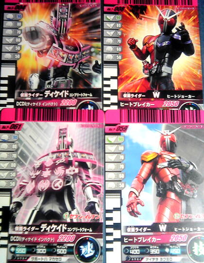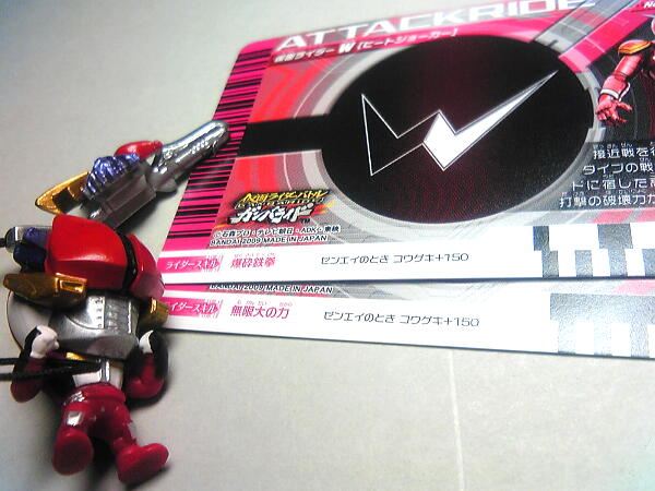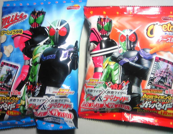 これとこれとあれを買おうとレジ持っていったら、レジのおばちゃんに 「パンにも仮面ライダーのがついてますよ!?」と勧められたがお断りだ!w (カードだけが欲しいんだから単価安いスナックの方がイイんだもん) そういえばボトル飲料にまた根付フィギュアついてんだね……。 (サイト見たら26日からってなってる……) 去年のは一種しか買えなかったのだけど今年こそとかって全部買うと1500円だしいらねーか、 (訂正:Wまでで平成11作品なので11ライダー、1650円ですね) と思って去年唯一買った電王ソードf.と対に、と強化?形電王ライナーf.をセレクト。他では見た感じハイパーカブトが元デザイン嫌いだけどいい感じに見えた。 そーいやクウガってライアルなのかな?タダのアルチなのかな? ライアルならちょっとだけほしいかも。ディケコンプは要らなーーい。 26日なんて先だだ先だ思ってたらもう明日か……。 買ったのはチートスとパップコーン各1。 パッケの色が二種見えたのでそれぞれとったらこんなだった。 パップコーン要らなかったな……orz食べるとまぁおいしいけど、皮がやなんだよね。 (今回袋の種類幾つあるのかよくわかんなかった。各1なのかな) 結果。 もちろん通常ナンバーから再録バーコードなのだけど、手持ちであるのかどうか確認したら、 見事どっちも持ってたわorzどうせなら……まぁいいけど。 裏のスキルみたらどっちも同じ効果とかなんの嫌がらせw ライナーを去年のソードと比較。なんだか小顔化してる……。 せっかくデンカメ剣ついてるけど全然持てません。 (頭と柄がくっついてるんだからそらー無理だけどさ。サイズ的にイイのに惜しいなと。) 飲料のおまけは選べるから早々売り切れるだろう感じなので欲しい人はお早めに。 PR Designed by まめの (Customized by Lost R) Copyright © [ るまぶろげーとZ ] All Rights Reserved. http://ruma.blog.shinobi.jp/ |