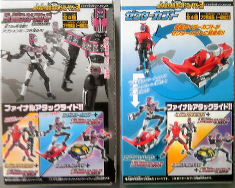 まずFAコンプから!Oh!マイ! ガンモードライドブッカーつき。 FAディケのがソードなので交換したり……とおもったらシールが1弾のとと違う! なんか統一感なくてつかえねー。(つか銀は明らかに誤りだし……) 最初に言っておく!胸のカード類はシールだ!(当然) だけどちっさいから全部の顔ちゃんと見えないよ!おかしいね!さっちゃん。 つづきましてー。コント「おばあちゃん」 武器などつかん!握り手だからな。 ……あ、単独立ち姿どっちもとってねーやw並び立ちで勘弁。 カブトははずして素体っぽくする部分がありません……無念。 (両肩から生えてるゼクターの角はネジでボディあけないと取れない) どちらも下半身黒すぎ。(コンプは側面あるからそうでもないか) DCD「おい、おばあちゃんの話はどうなった?」 カブト「おばあちゃんとかけて、ゼクターカブトと解く……」 カブト「どちらも腰がすごく曲がってるってな!」 DCD「……(曲がってんじゃなくて前後逆にしてるだろ取り付け位置変わってるし)」 いちおう尾端の凸にDCDの足裏の穴引っ掛けて乗りこなせってなってます。 ……でもコンプのときは最終フォーム呼び出しだからなぁ。 PR Designed by まめの (Customized by Lost R) Copyright © [ るまぶろげーとZ ] All Rights Reserved. http://ruma.blog.shinobi.jp/ |