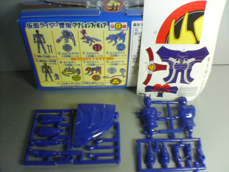 なんかネット通販ショップめぐりしてたらまだこんなの置いてるとこ発見! 森永チョコスナック仮面ライダーヒビキ!今ライダー出してないよな……? 組み立てアクションフィギュアがおまけ!! 一個当時150円じゃないかなー?と思うけど200円しました!キビシー! ……ん、箱に有るM20って表記は値段略号だろうか?じゃ元から200? (これだけじゃなく他にも注文したものあるけどそれはまた別の機会に。) 鍛えると言うより寝かせられてた3年間。 当然チョコスナックは期限切れてますので捨てられてました。 チョコスナックうまいのになー。←3年前の食うんか! シールはちっこいから剥がれて無くなるのが目に見えてるので貼らない! でも貼らないとすげー地味!黒とか紺とか学校指定の何かみたい! なお、8種のうち6種しかなかったので、 オマケパーツで出来る音撃鼓が完成出来ません……。 弐番リョクオオザルと七番キアカシシがなかったのねー……。 組み立てた!ちっこい!鬼たちはMRS版の半分くらいだろうか?(比較写真撮り損ねたー) 音撃鼓は前と後1/4ずつが欠ける結果に……前だけでもそろえばカッコつくのになー。 しかーし!ディスクアニマルたちはなんとこのサイズで変形! 小さすぎてアカネタカの羽関節へしおれるとこだった……(汗 いやしっかりプラ白化させちゃいましたけど……。こわいよー。 すげークオリティ!でもぽろぽろ外れますので小さい子には不向き! ってかパーツなくしまくりそう!ってか丸ごとなくなる! (ほんとのDA玩具でもカニとかぽろぽろ脚外れるからねー) バンダイキャンディトイ版食玩ディスクアニマルと比較。でけー! けどこれで昔のシングルCDサイズ径ね。 こんだけデカイと「カエルに睨まれたヘビ」って雰囲気が出来ちゃいます。 いつものついでー。ちっぷすR第4記録、今回は安いスーパーで6袋買い。 売り場にそんだけしか残ってなかったの。買いあさってるライバルが居るな! ブレるにもほどがあるな!だが私は撮り直さない! (左下とか解らないかもだけど仮面ライダーレンゲルvsタイガーアンデッド姐さん) ライドロンはダブリだけど他は初と言う好結果。 でもまーあんまりいいのがないかなー? ゼロノスアルタイル(食玩フィギュアポーズ)くらいかなー。 サザエ怪人みたいなのがキラで吹き出したけど、 脚の感じに見覚えあるので説明見たら、暗闇大使(ZXの敵幹部だったかな)の変身体だって。 じゃキラでも妥当かー。 てかイラストホントいりませんから!平成組はSPIRITSに出てこないでしょ! PR Designed by まめの (Customized by Lost R) Copyright © [ るまぶろげーとZ ] All Rights Reserved. http://ruma.blog.shinobi.jp/ |
