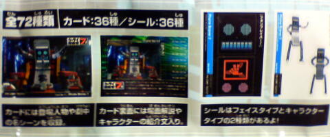 いろいろ欲張りな品ですがあまりに売れなくて一気に半額処分ワゴンに。 こっちTV本編放送されてないからそれでも捌けない。 だからかってみた「ケータイ捜査官7・カード&シールガム」。 発売はバンダイキャンディトイじゃなくエンスカイ。 だからカードの品質も上等な感じ。一袋にカード2枚、シール1枚封入。 ミニプラなどもケータイ捜査官ものは全部粒ガム(一個)だった気がするので被っちゃってるね……。 バンダイ側がコインラムネにしてくれてればよかったのにね。 カードはほとんど劇中カットからばっかり。意外と人物が多い? 36種しかないのにまだ被らない。BOXで買ったらそこそこ揃うんだろうか? でもシールも同じ36種なのでこっち揃えるほうが大変じゃね? たとえBOXでまんべんなく揃うようにしてもカードが今度は全ダブりに……? カードは消費しないからシール2枚のほうがよかったんじゃないかな~。 ところで顔シールはDX玩具にぴったりサイズだと聞いたけど持ってないからわかんなーい。 今出てる、より劇中プロポーションの超合金7の顔とはまたサイズ違うんだろうけど。 どうでもいいことだけど、 袋上部の破り口から縦に開けるとケイタの顔が真っ二つなんですけどw PR Designed by まめの (Customized by Lost R) Copyright © [ るまぶろげーとZ ] All Rights Reserved. http://ruma.blog.shinobi.jp/ |