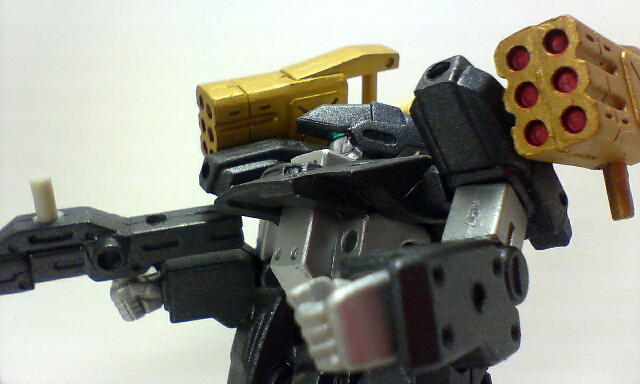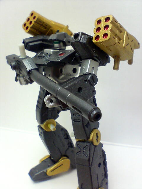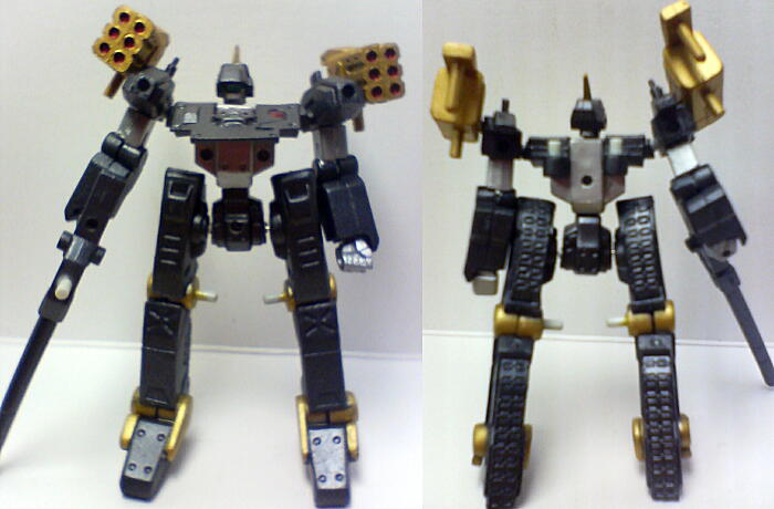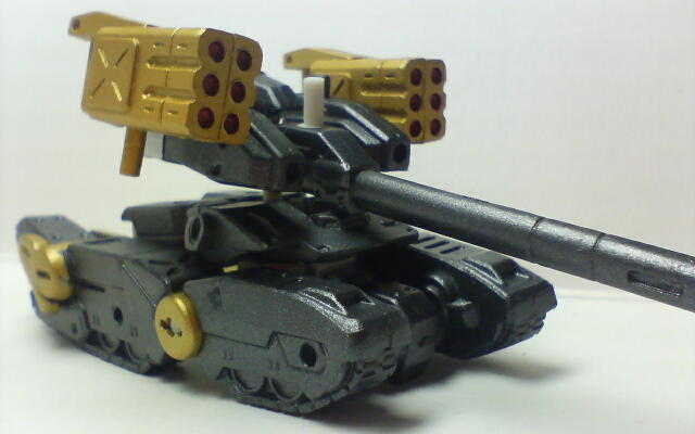 タンク形態。 金色のランチャーは全種集めたときの合体メカ用なのでオプション。 中の説明図表裏。箱のヒラキも撮ったけど汚いから没。 一見問題ないタンク形態ですが、 実はここに重大な事故が発生しました。 両股関節ともポキンていったよポキンて!よわすぎ! ……え、あたしが馬鹿力過ぎなんですか?? いやこのタンク形態にするのに2点で接続することにしてあるもんで、 それの合いが悪くて無理やりやってたら……がっかりだ。 つーことで最初の画像と、以下のロボ形態では 股関節に金属線(ゼムクリップ伸ばしたやつ)さして撮ってます。 右肩の角度があがって固定なのは主砲持つこと考慮してなのかねぇ? 正直両方同じ角度にしてほしい。 脚の裏面は全部キャタピラー(同名会社の登録商標ですw)です。 ガンタンクR44(@F91)をおもいだす、 ってあれは腿にない代わりにバックパックで無限軌道後半部背負ってたか。 金属線なので股関節適当に開けますけど本当はなんか内股気味でした。 黒戦車ロボ、悪くないけど壊しちゃったり色々残念でした。 ちなみに変形って(設定段階での)組替え式は邪道だと思うのですが、どうだろう。 まーたとえ設定でそれクリアしててもこの仕様はサイズ小さいし再現無理だろうけどね。 PR Designed by まめの (Customized by Lost R) Copyright © [ るまぶろげーとZ ] All Rights Reserved. http://ruma.blog.shinobi.jp/ |