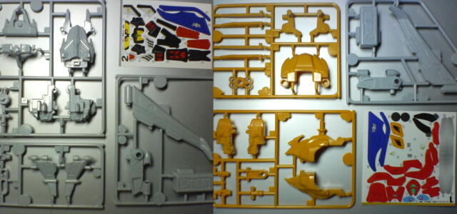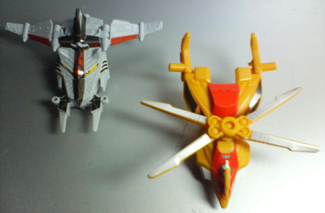このところこの検索ワードで来るヒト多くなってたけどやっと買いました。 (朝一でjusc○行ったらもう減ってたから週末?に入ってたのね……) (城ドランいっぱい有ったの捌けててPイクサ&シュードランだけ残ってた) 今日は更にイクサベルト・イクサナックルが並んでいたのはいかがなものか! 定価で買って損した!(いや出来は良かったけどさ) でも予見できないし……orzうえ~~ん どうせなら音の出るナックルがいいしなー。(目的がかわっとる) 一点250円値引きって大きいよなー。……あとのまつりあとのまつり。 ランナーはこんな風。ジャン・ボエールの主翼は片方ずつ銀虎と金鶏に入ります。 (画像の縮小率違うから紛らわしいけど枠サイズは箱で決まるからだいたい一緒ですよ) つまり銀虎(パーツ最少数)と金鶏(ローターで稼ぐ)は各2枠、 ジャンボエは合計すると5枠ですね。ボエ~~~。 橙鰐の2箱よりは少ないのかな?(あれ合計8枠だった気がするし) でも完成するとクジラさん前後左右にでかくてかっこいい! 裏面。ジャンボなのに立てちゃう。(あ、頭部だけモード違う……) ボエール教官のご尊顔。 その頭一旦はずして上下反転して胴体後部を左右に開くと「ジェットモード」。 って劇中言った気がするけど箱には「ハイパーモード」て書いてある。どっち? ボエールには直接の搭乗者(パートナー)いないけど、 コクピットぽい緑色のところは普段さかさまだ……。無人でよかった。 ホントはエンジンソウルがむき出しになる部分らしい。 (カード状のも付いてないし挿すトコもありません) さてウイングス兄妹の相棒たち。 銀虎と、金鶏。(←田中真弓の声耳障り……忍豚時代から。) 以下ダラダラ貼り。黄色樹脂がシールの着きが悪い……orz 何で鶏という基本飛べない奴がウイングスに抜擢されたですか。 (デザイン・企画的に。幼児がわかる物ってことで鶏?いまどき鶏田舎にしか居なくね? 大人になっても4本脚のある鳥描くとかいう伝説もあるしな現代っ子←もう大人だろ) いや、そりゃ虎も飛ばないけどさ。……クジラは海中を飛んでるからいいの! てことでもう画像いっぱいだから合体ロボ編は明日分に書くよ! 今日深夜のうちに書いとくよ! 続くっ! PR Designed by まめの (Customized by Lost R) Copyright © [ るまぶろげーとZ ] All Rights Reserved. http://ruma.blog.shinobi.jp/ |