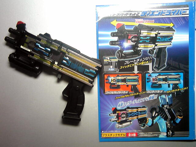 ディケイドキット2から「ディエンドライバー」。 変身銃なのですが、寂しいギミック……。 いや劇中と比べてですけど……DX玩具も評判がよろしくないらしくてねー。 ライドブッカーガンモードが弾発射ギミックあったからそれつけたほうがよかったんじゃ? ミニカードってったらDCDキット1のライドブッカーガンモード持ってないんだけど、 持ってるほうのソードモードだけ割引で売ってた……ガンのキバカードほしいんだよー。 で、このディエンドライバーはDCDベルト&ブッカーよりスケールが小さくなってるのか、 ミニカードに相当するものはシール。幅15mmってとこか……。 本体から出すことはできません。 みえるかなー? トリガー前のスイッチ切り替えでカメンライドゥの赤カードとファイナルアタックライドゥの黄カードが切り替わります。 地味だーー……。 トリガーは一応動くけど特に意味はない。 デザイン的にはなんかイクサベルト&ナックルみたいな感じで、 凹部凸部へのラインシール貼りすさまじい。裏面何もなくてショボーン。 ディエンドベルトはちょっと買う気になれませんねー。 PR Designed by まめの (Customized by Lost R) Copyright © [ るまぶろげーとZ ] All Rights Reserved. http://ruma.blog.shinobi.jp/ |