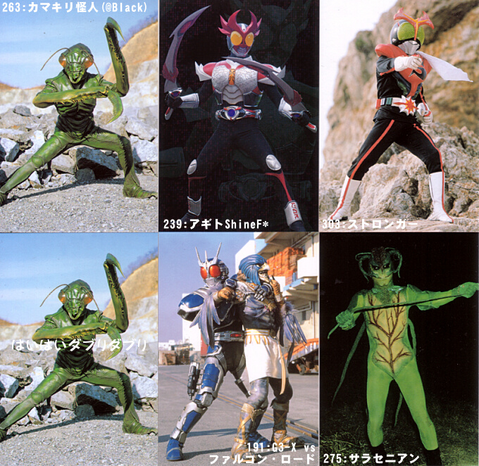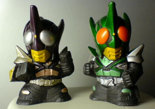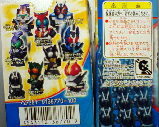 一個100円の食玩仮面ライダーキッズ・「電王」登場編です。ホッパーズイカス!! ちょっと色がTVと違う感じもしますけど、まぁいいさSDだし!? 額の角の先のショウリョウバッタ触覚風ディテールははじめて気づきました! (玩具として尖り過ぎないために丸いのか?と思ったらディテールだったw<兼用かな) 正面。 顔もう少し丸くしてほしかったな!でもよく出来てると思う。 なお100円食玩にはリアルライダーもあるようですが、大小とも背面は塗ってないようです。 ま、仕方ないか。 ついでに(?)電王ソードフォームも買ってあげた。一応電王登場編らしいし。 顔真ん中の塗りがいい加減だし、胴体前に剣持っちゃっててボディ見えない!だめだ! 右肩に担いだポーズがよかったけど……原型作った人は1話見れるずっと前の仕事だろうしorz そんでチップスR第2記録、今回はスキャンしてみました。 前買ってた3pぶんと昨日買った2p分。 どうでもいいけどスキャンしてる間にごちゃごちゃっとしてしまい(?) 飾ってたパンチホッパー「だけ」が行方不明に!……影山しっかりしろ!!(ヒドス ……はいはい早速ダブってきましたよっと。 カマギリジン(@スカイ)ならまだいいのになぁ!(そういう問題か) ってか、サラセニアンこわッ!初代ライダーの怪人ですね。 つづいて横系。 なんかオトロシ(もちろん響鬼の大型魔化魍)ただのサイですよ?(胴体が亀なのです) これキラカードだけど、スキャナだと光が一方向なせいか光りませんね。 上のアギトShineFもそうです。(*つけておいた) スキャンの方が見やすいんだろうけど、文字入れるのメンドイな!(<わざとですよ) おまけ。ライダーキッズの箱側面。トルーパー隊が良過ぎる!!でもカワネ!w さらに追加。一旦こう見えだすともう止まらないです!!助けて! PR Designed by まめの (Customized by Lost R) Copyright © [ るまぶろげーとZ ] All Rights Reserved. http://ruma.blog.shinobi.jp/ |