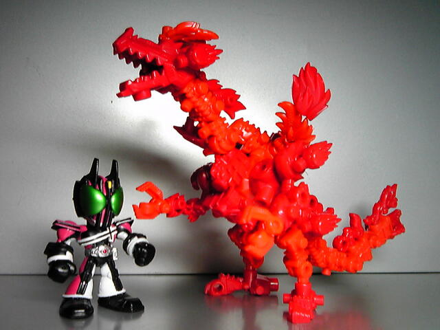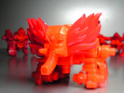 色が赤系だけってのはさびしいけど、親分と合体前提の強化パーツ扱いだからアリかな。