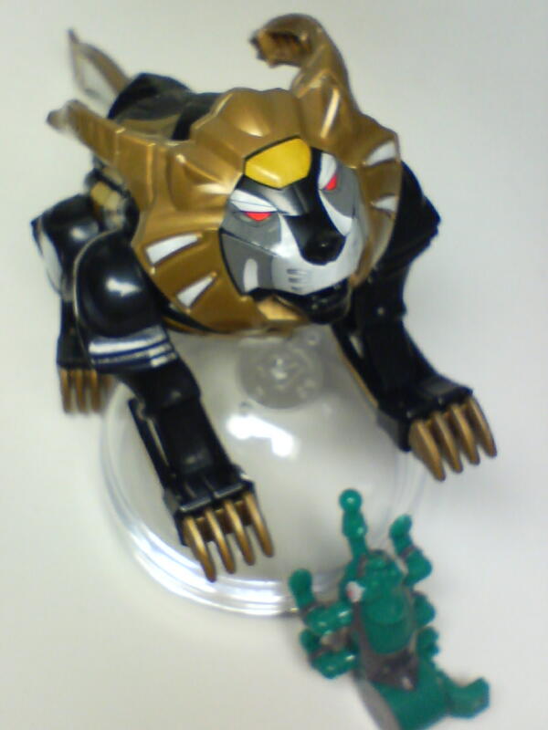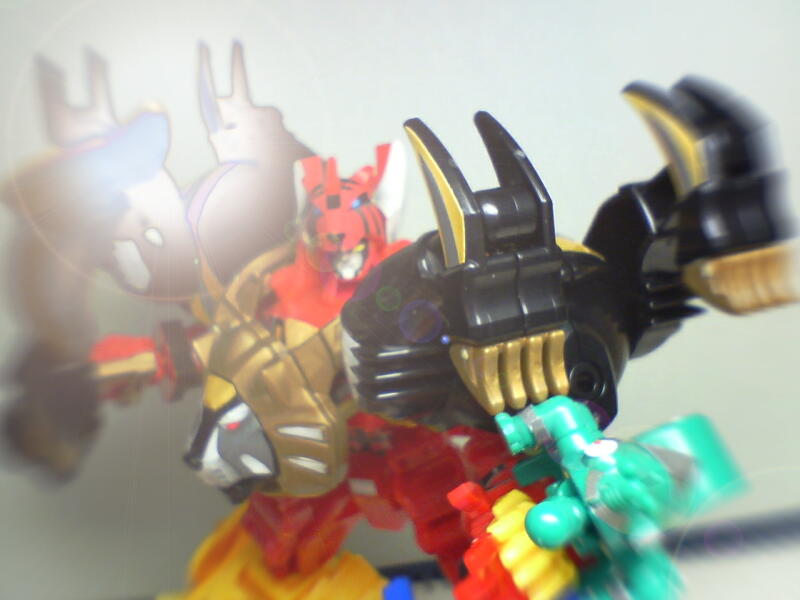 完成!ゲキリントージャ!(とか映画で言ってたかどうかは記憶にない) 映画の逆鱗闘者は(こういう漢字か?w)香港の夜景に映えて、 ガンダムフィックスのサイコガンダム並みに相当かっこよかったのですが(解り辛い例えw) 食玩でもかなりの迫力です。まー1400円ほど掛かるからねぇ……(TT) 赤い部分ばっかりの上半身に黒と金が加わることで全体的に渋くなった?気もします。 緑色のサブウエポンのちっこさはご愛嬌w なんだか室内犬のような愛らしさ?のリンライオン。 525円売りといつになく高額ミニプラですが、ゲキゴリラやゲキタイガーが 315円売りであの密度なのは主役特権なんだなぁ、と思わずには居られません。 おそらく敵のこれが525でも破格なんだろうな……。 リンカメレオンは小さ目の1フレームのランナー構成ですが、舌が伸縮できたりします。 手足も独立して動かせるけど小さすぎてわかんね! 合体するとこんな感じ。 アクションゲキトージャ(鮫被り)とゲキファイヤー(象肩乗せ)を従えて見ました。 劇中ではこんな風にはなりませんね。 今週放送分(26日)ではゲキファイヤーと共に、 ウルフを右足につけてゲキバイオレットが一人で操るゲキトージャウルフ (黄色い脚はいらない子orz)が並び立ってましたが。 ゲキトージャウルフの再現は来月ゲキウルフの発売を待ってからになります。 過去のゲキトージャ&武装ビーストもパッケ換え再販されますから安心! (アクションゲキトージャだけは売られないけどね!意外と貴重になった?) そのアクションゲキトージャにつけてみた状態。やはりトップヘビィ! 武器もてない拳固しかついてなかったかな?と思ったんだけど アクショントージャについてたのが平手だった気がするのでなんとかダボ穴につけられますね? (ちがうっけ?合体トージャとこぶし入れ替えちゃってどれがどれだか……。) 当然同月発売のゲキファイヤーも装備できます。今後TVに出ることはあるのだろうか? もともと黒を多用した配色なのでぱっと見「変わった~!」って感じはありませんねw あと、ゲキファイヤーで象と蝙蝠つけたのやってなかったのでついでに。 うちのリンライオンは出たがりさんです。 つーことでいろいろまとめて。……あれ今月予定に載ってたゲキレンキッズは?(あ9月上旬か…) ま、まぁこんなにメカ(機械じゃないが)が楽しいのに人気の薄いゲキレンジャーに愛の手を!! エフェクトかけまくりで締め。最初のとは少し別の写真です! ……カメレオン正面顔怖い! PR ※ Comment