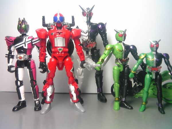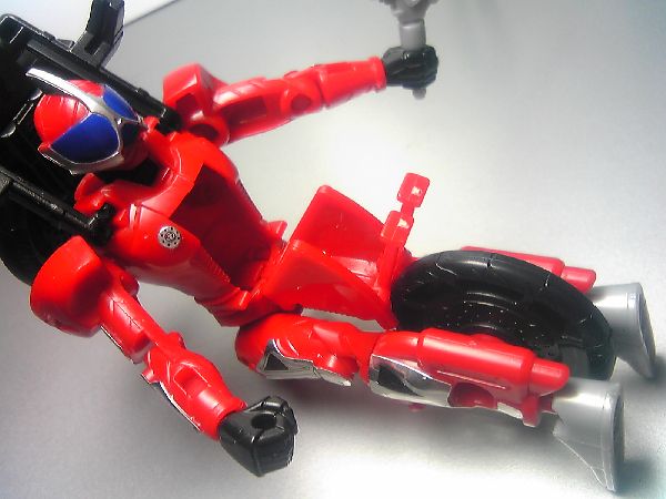 セブンに久々いったら売ってたのでつい。 買ったのは前記事のガンバラより時系列的には前だけど同じ日だ! この「仮面ライダーアクセルフルスロットルギア」全3種は、 なりきり系のアクセルドライバーとエンジンブレードがメインアイテムらしく、 1BOXの10個のうち超変形アクセルが1個しか入ってないとかいう話で……。 だからjusc〇とかでも、もうコレ無くてベルトと剣だらけなんよね。 でも出来はいい。 前番組で各種超変形ライダーこなしてるだけあるから。 (つか他ライダーの無茶変形と違いアクセルは変形のためにデザインされてるしねw) 箱表ー。 箱ウラー。 半完成品ですのでライダー自体は組んであって各部パーツを取り付けシール貼るだけ。 ↑コレはシールはる前。 ↓はった後。 後ろ。ただでさえ黒部分多いのに後ろ暗くなってしまった。 劇中よりタイヤパーツは大きめ。 (劇中のはアクションの都合上かバイク時大型化しちゃう) しかし後輪はタイヤはんぶんこ怪人だけど、 コレは普通のエアの入るチューブ入りタイヤじゃないってことなのかな構造上? (……あれ、現代のバイクのタイヤってチューブあるの?無いにしても分割は無理かw) タイヤ跳ね上げてみた。 横にあるのはエンジンブレードじゃなくバイク時用ハンドル。 ……劇中はドライバーのを利用してるような気がするけど?(サイズの都合で別にしたのかな) てか武器ほしかった!!! まさかなりきり食玩のほうのエンジンブレードもたせらんないしw シンケンの烈火大斬刀やDCDのブレイドブレードの比じゃない大きさになっちゃうもんね。 変…… 形の途中! ガンダムF91みたいな胸開けてスタンドが出せます。(たぶん玩具・食玩だけの仕様) つか劇中で胸からエンジン飛び出してきてたっけ? ドーパント同様に変身中はもう生身の肉体じゃないのか!?ガクガクブルブル 変形がアクセルのゴールだ! 劇中CGよりかっこいい気もする。 リボルチェンジダブルマシンのW-サイクロンジョーカーのっけてみた。 (やはりステップが無いので決めづらい……) この比率ではそうおかしくも無いような感じだけど、 実は身長ぜんぜんちゃう! まーそりゃねー、値段違うけども(アクセルは300売) バイクとセットで一箱のライダー(たしか380売りだった)と同じにはならんよねー。 同じ身長だったら、たぶんまたポケバイ状態になったんだろうね。 つかFAFJとも違うし。(当然だけど) さらには先輩の超変形の頭(カシラ)・ディケイドよりややでかい。 (ディケイドの超変形ライダーズは380売だったんだけどねー。おのれでぃけいど!) つーことで無理しながらもアクセル、押さえましたー! 絶望があたしのゴールだ! ……あ、もうとっくに通過していました! PR Designed by まめの (Customized by Lost R) Copyright © [ るまぶろげーとZ ] All Rights Reserved. http://ruma.blog.shinobi.jp/ |