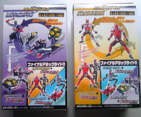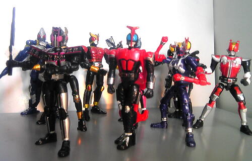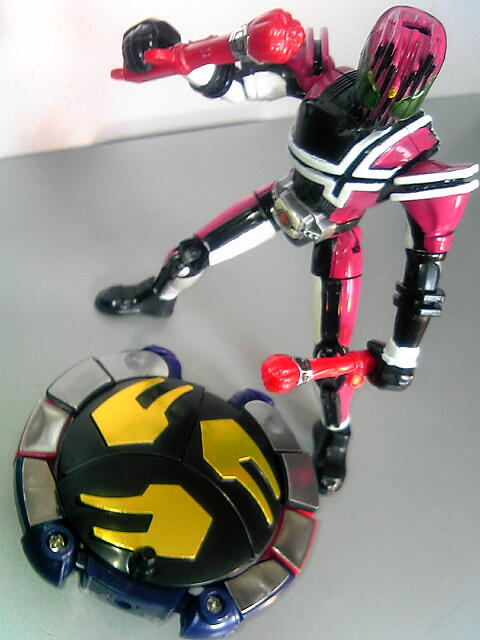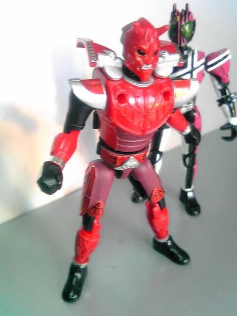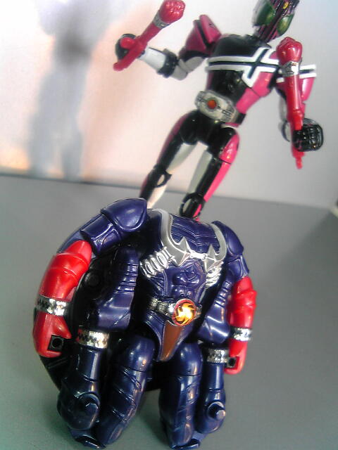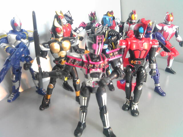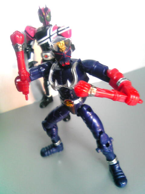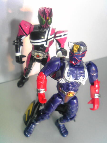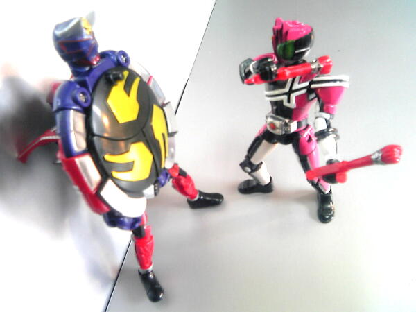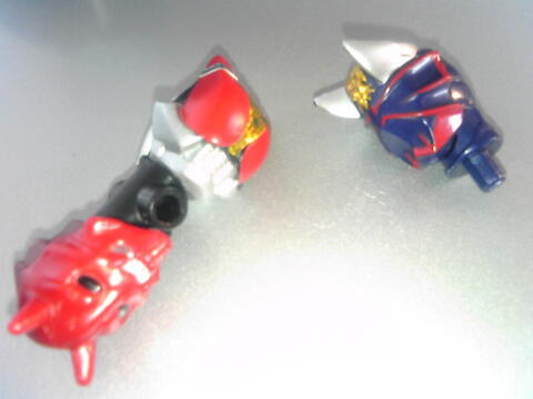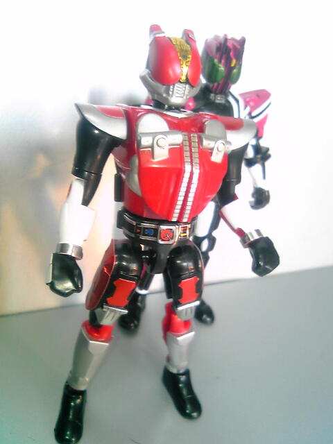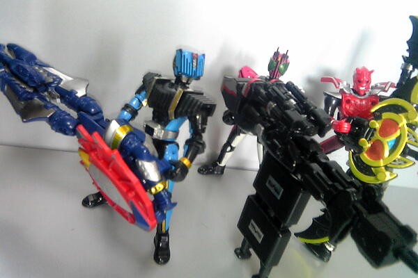ヒビキは他人に打たれるためなのか音撃棒ついてるし、もちろん自分でも握れるんだけど、 残念ながらデンモモのお手手が拳固!もちろん武器なし! そこは(後述の理由も歩けど)握れる手にして、 ソード2種(デンガッシャー剣&モモタロスォード)つけてほしかったなぁ……。 ちなみに握れるつっても装着変身みたいな可動ハンドじゃないからね!コの字の手だよ! 電王はフットパーツのみ。あと外せる部分もあるけど組み込み済み。 デ・デ・デ・ダイマオウ! モモ「誰が大魔王だこのやろう!」 DCD「早速くすぐったいぞ」 背中アーマ取り外して頭入れ替えます。完全手動。 FFR玩具だと背中アーマが腹部ヒンジで開いてそこについた軸で頭回転入れ替えらしい。 もちろん前装甲の開いたのも位置ずらして固定しないといけないけど可動部節約のためです。 箱裏とか変形説明でモモはガニ股ポーズ指定なんだけどそういうキャラだっけ?w とりあえず次、ヒビキ。 アスム「僕はもう襲名したので一応ヒビキでづ!」 可変のため意外に可動部は多く、武器もあるのでいい感じ。 ちょっと体のパーツにクセがあるけど(変形後弧を描く必要があるため) ポーズも結構決まる。 ヒビキーうしろうしろ! DCD「やっぱりくすぐったいぞ」ヒビ「う!」 ヒビ「ウドダドンドコドーン!」 DCD「……人の滑舌パクるな。」ドドン! ま~る~で~オンゲキコに~なった~み~たい~♪ ソード「お互い生首になって大変だな!」 ヒビ「……あなだはべづに外さなくていいでしょ?そんなに出たいんでづか!?」 モモ「うるせえ!おまえなんかこうだ!」 DCD「ちょっとぽんぽんが痛いぞ」 ヒビ「きゃーやべてー鬼ー悪魔ー!!つかそこ背中でづー!」 モモ「てめえも鬼の端くれだろうがよ!」 忘れてましたがヒビキはアカネタカ形態にもなれます。 ……まー色の関係でぜんぜん茜色じゃないですけどね。 せめて響鬼・紅だったらいろがよかったかもね。 鳥頭シールが張りにくいわ、剥げ易いわでゲンナリ……。 モモが居れば映画オールライダー[対]大ショッカーの1シーン再現できます。 ……でもモモが拳固しかないからキバアロー持てねーんだよ!!!がっでえむ! 実はこの画像ではどうしても多少保持させないと立たないので、 右手のみヒビキオンゲキコのをかっぱらってつけてみました。 なお左手は軸の太さ違っててつけらんなかった……。 まーディエンドにブレード持たせるのも大変だったんだけど……間節ゆるいし。 ディエンドは銃ライダーなんだからモモと逆の方が向いてんじゃねー?とか思う。 以上、必殺!超変形ライダー3でした。 これせっかくいっぱい並べてみたんだけど、一人忘れていたという……。 何とかを探せ!じゃなく欠席者を探せ! PR Designed by まめの (Customized by Lost R) Copyright © [ るまぶろげーとZ ] All Rights Reserved. http://ruma.blog.shinobi.jp/ |