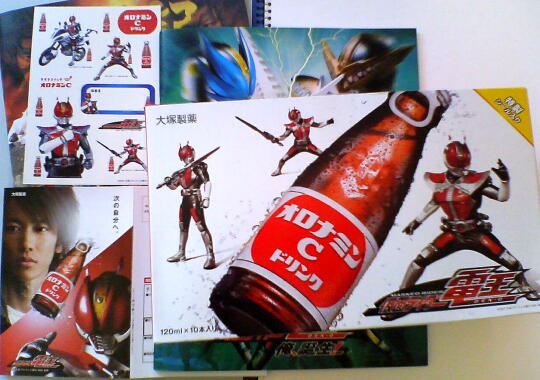 映画見たのは劇場版・仮面ライダー電王「俺、誕生!」な! 併映は電影版獣拳戦隊ゲキレンジャー「ネイネイ!ホウホウ!香港大決戦」と、 ブリッジ的に3分ミニ作品「おまけ・モモタロスのなつやすみ」<ピカチュウ並! 実はDVDつきパンフってのがあるんだけど売り切れるらしいんで東映の通販で注文してた。 まだこないけど。 でも、映画見ちゃったら読みたくてやっぱその場でも買った! 下のは帰りに(地元で)買った食玩と、映画にもちらりと出てきたwあのドリンクの限定パック。 7月いっぱいでキャンペーンが終わったせいか安売りになってたので……。 だって箱があんまりにもかっこいいんだもの!!!! 申し訳程度にシールがついてますw(これってある意味、食玩?) なお映画自体の感想はまた別に書きますね。(忘れないうちに書かないとーーー) 続きテキストは小さな巨人です的に。かつ、ある意味ネタバレ的に。(<やめろ!w) しかし今回、元からjpgだというのに画像切り出したり縮小したりする前に、 ミスって何もしないまま上書き保存(アプリのバッチ処理機能で……)してしまった……。 なもんでいつもより一層画質が荒れております! ってかオリジナル消えちゃったーーー!(昨日分の長崎画像2点もね!) ……さて仮面ライダーキッズの残りから、人気薄トリオw 良太郎とプラットフォームとソードform onマシンデンバード。 角度変え。……やはり良太郎じゃないよなw 残り電王3フォーム。まぁ妥当なつくり。可もなく不可もなくw こちらはたいしてちがわないリュウを前に出してみたver. あと半額になってたので再販もののはずのライダー対決。 ハイパーカブトとコーカサス(金がコーカサスか……ヘラクスと思ってた) アップも撮ってみたけどあんまり変わんなかった……。汚いだけじゃん。 ちゅか何か足元に変なプルバックが?!光ってるけどその箱が上方に……。 カブトのゼクトマイザー&マイザーボマーとかまったく無意味な企画だったけど、 かわいそうに半額でした。まだ残ってたのか! しかし半額でも100円!元が200円じゃそりゃ売れねー!!! (虫の意匠の部分ちっさ過ぎるしねー。黒い台車じゃん?) 見えづらいけどオロナミン箱裏とミニ特製シールw、 瓶のシール集めとはまた別キャンペーンのリーフレット「次の自分へ。」 こっちのキャンペーンは8月末までだけど親子で夏のチャレンジ目標を宣言する、 というものなのでまぁかんけいない。一万名に当たるけど変なものだしw ついでに、よほど見ようかと迷ったけど一年後とかにTV放映あるだろうと思い、 踏みとどまって見なかったフジ版「西遊記」もパンフだけ買ってみた! (昔と違って駅横にシネコンが入ったので劇場探してうろうろしなくて済むので助かる!) パンフ開いた状態で伏せ、逆さまに撮ってます。(クリックで見やすくw) 裏表紙が!MONKEY MANECCO西遊戯になってる!かっけー! このポスターもあるらしい。それだけはなんか欲しかった!!売ってたのかな? (実際はポスター持ち帰るにも保管にも邪魔なのでいらないや……。) つかさーMANECCOってフジ西遊記自体が堺夏目版のマネッコだってのにね!? ご丁寧にMONKEY MAGIC西遊記ってパンフタイトルだよ。フジは横取り大好きだからな! (今年はNHKで火がついた千の風をいただいちゃってるし!その昔はテレ東がアニメにしたポケモンを奪おうと画策してる風な気配も感じられた。あのピカチュウショックであきらめたようだけどね!フジガンダムは御大起用のタンエーで失敗したのにTBSが旧作完全無視のseedでそこそこ当てたのでさぞ口惜しい思いをしてることだろう!) ……長くなった!では来夏、土曜プレミアムで会おう!! PR ※ Comment