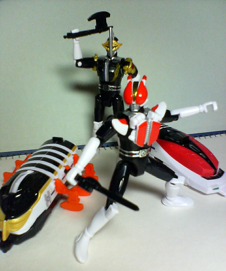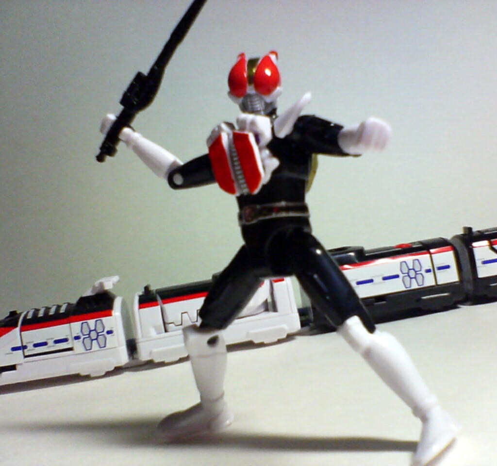 あとで26にちにいどう 仮面ライダー電王デンライナーイカヅチシリーズ買ってきた。(組立済。シールは貼る。) 今回のラインアップは「デンライナーイカヅチ前車両(まえしゃりょう)」 「同・後車両(うしろしゃりょう)」(ぜん・こうしゃりょうじゃないのよねw) そして「チェンジライダー電王ソードフォーム&ガンフォーム」。<待望! 一応メインは電車?やはりスプリングアクションで変形します。 シール貼り失敗して尻尾部の紫のとこ破いちゃったorz(見えてる側) 「オレ、ようやく参上っっ!!」まさにようやく。 だけど胸変形の兼ね合いで一番見た目がおかしくなってるモモ(SWORD)フォームカワイソス。 本当は腿前面にあるアーマーにもフォーム色が反映されるんですが省略。 でかい玩具でもフル換装のがでてるけどそこは無理なのかな? (追記:4態変身玩具では腿中での4色ドラム回転により再現してる模様!やりおる!!) キンタ(AXE)フォームと競演。映画版はなんか4態揃い踏み出来るみたいな……? 「写真ボケボケだけどいいよね?答えは聞かないけど!!」胸開いてマスク変えたらリュウタ(GUN)フォーム。武器も持ち替えてね。 「なんか踏んじゃったけどいいよねカメちゃん?」「……あ、いやそれは」 これで食玩電車も8両目。こんどはゼロライナーが2両出るだろうし……。大所帯だ~。 PR Designed by まめの (Customized by Lost R) Copyright © [ るまぶろげーとZ ] All Rights Reserved. http://ruma.blog.shinobi.jp/ |