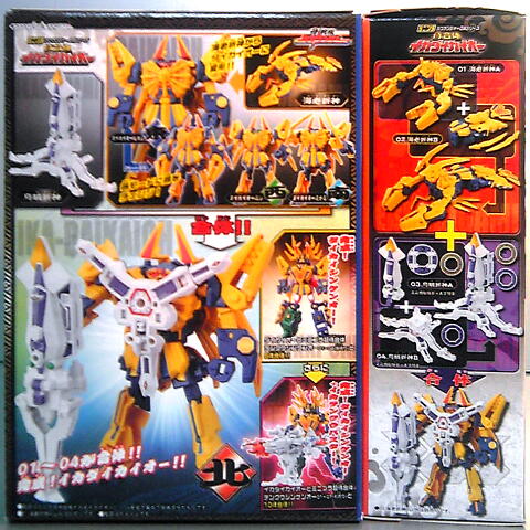 ゲンタは寿司屋だからロブスターは扱わないのか。知らないとかw てかゴールド寿司の“屋台”は現代では出せないと思うんだけど、どうなの? (いわゆるなま物のニギリが出せない気がする。火を通したネタ系の寿司ならぜんぜんOK) 2箱600円でロボになりまっせ。 ロボにならない方がボリュームあってでかいけど。 (ハサミを前に出しきったら230mm) 商品名ではイカが全面に出てますけど……。 合体の素体としては海老ちゃん(ダイカイオー)がメイン。 イカは強化武装でしかない。 パーツ状態のA箱=上半身はランナー3枠。 B=下半身は2枠しか……でもイカではもっと酷いボリュームの差があるとか? A&B合体!……エビだけになのか? 海老上面はもう載せたので裏面を。 本物の海老で一番身の詰まってるとこが肉抜き多くてしょぼいw 変形!ダイカイオー!(一体でオー名乗るとはふてえ野郎だw) でも脚みじかいおw このダイカイオーヒガシが基本形らしい。 「トォゥ!トォゥ!東~!」武装は肩のハサミをナックルに装備。 (片手見切れてしまった……) 「ナント!南~!」ダイカイオーミナミでは双剣装備。 「おっシャー!西~!」ダイカイオーニシは軍配?扇?装備。 顔は体内にディスク状のものがあるので回転切り替え。 唯一額の文字地色の赤い「キタキタキタキター!」ダイカイオーキタ?は、 イカダイカイオーとしての顔なので単体再現できませんorz しかしこのテキトーな顔デザイン、ギンガイザーとかマシンブラスターとかの頃みたい……。 シンケンオーと合体してシンケンダイカイオーじゃない深海オーじゃない、 ダイカイシンケンオーになります。 背面シンケン上半身ぶっ倒れててかっこ悪いけど画像撮り忘れた。 (つかあんま遊んでないのにシンケン間節ユルユルなんだよね……) イカとダイテンクウが合体してイカテンクウバスターになるのはどっちも持ってないので割愛。 今ちょうどテンクウシンケンオーシリーズとして他のも再販かかってるので買うといいよ!(他人事) なおシールはメタルシールに変更されてると思います。 つーことでえびぞーでした。 PR Designed by まめの (Customized by Lost R) Copyright © [ るまぶろげーとZ ] All Rights Reserved. http://ruma.blog.shinobi.jp/ |