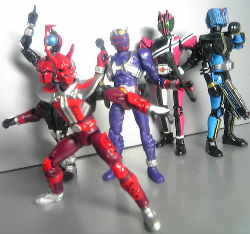 ブリッジテキストもガンバラ登場(前衛時)のもじりでーす。 正直、なんていってるのか自力で聞き取れませんでしたw (オリジナル椿氏の声ではなく別の声優?なんだけど意識してやってるのかな?) シールも普通、ブレイドとしての追加部品は後背みたいなやつだけ。 (一応ジャックフォームの翼のイメージもかねてるようです。モールド線入り) 前面。無難にかっこいい。FFR玩具より胴体がタイトにアレンジされてマトモに。 (FFRでは相当ダンボールガンダムみたいな胴体なのです) 難点は脚裏面にブレードあるため関節あっても膝がほぼ曲がらない。 さらに腕に関しては変形に必要性がないためか、まったく関節がないw 肩が縦回転&肩アーマー下で回転できるだけ。ちとさみし。 後背に隠れるからかすっぱり肩の塗りも省略された、背面1。 そして、背面2↓。 ……な、何だこの胴体中身はw 前面2。もう人間じゃなくなったんだな剣崎!(いやこれ剣立カズマだし) へんケゥェーーーイ! 腕形状はこの時の状態基準で固定されてる感じ。 正直おもいからすでにヘロヘロ関節のディケイドには持たせたら倒れますorz 相当無理して立たせてみたらふんぞり返ってた。 「重みは一瞬だ!」 「……さすがにこれはもって帰れないなorz」 通りすがりの装着変身だ! なかなかいいサイズ?でも、もち手相性が無理ありますけど。 せっかくだから比較。 装着のブレイラウザー小さすぎるやろ! 市販DX玩具を大人が持ったみたい。MRSくらいのボリュームが一番いい感じ。 FFR玩具自体の身長は装着よりやや小さいくらいだっけ? 「よし、だいたいそろった。あれ……?」 「……おまえら、混ざってんじゃねー。」(MRSより) しかもモモタロスはライダー状態に成れてないし! (なんちゃってデンオウモモタロスですみません) 上3つの超変形ライダー&FAコンプリDCDは8月出るみたい。 以上超変形ブレイドと愉快なライダーたち(+赤鬼)でした。 PR Designed by まめの (Customized by Lost R) Copyright © [ るまぶろげーとZ ] All Rights Reserved. http://ruma.blog.shinobi.jp/ |
