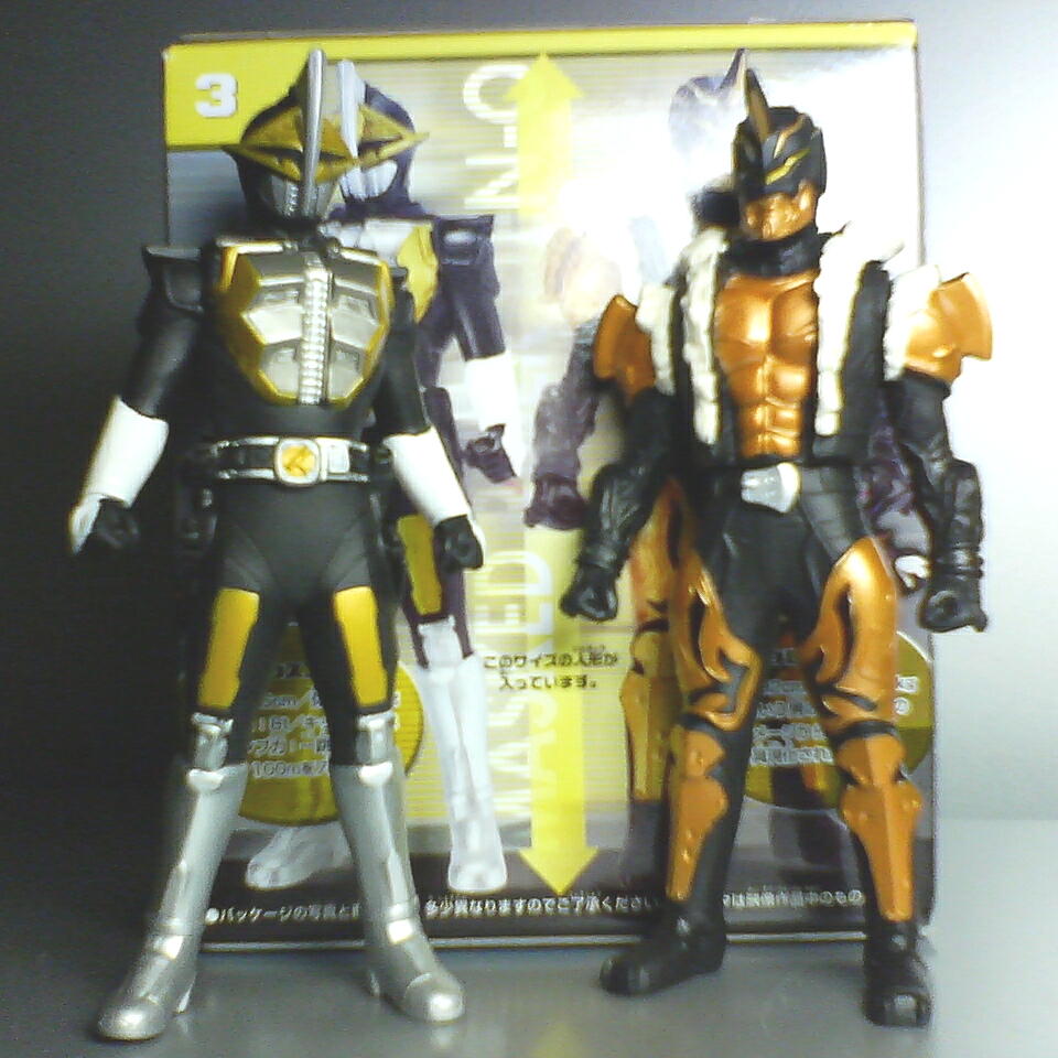 ♪ふぁらっふぁふぁっ・ふぁーふぁーーんほーーん(<なんじゃこれ) デンライナー・オーナー「ヒーロータイムの食玩から。 今日はプレイヒーローダブル・仮面ライダー電王&イマジンの中身をお送りします……。」 といいつつ箱から。こんな感じの箱です。表、裏、サイドに至るまで台詞遊びが秀逸。 今回のメインはなんと言ってもタロスイマジンズ!食玩リアル体型で発売は初めて? キッズでモモが出ただけだったような。今回もモモ人気だろうな! すばらしいクオリティなのですが、うちに来たモモは眼がアンバランスになってました……orz 右目塗りがやたら小さいのね。アップで撮らないとわかんないんだけどさ。 おまけともいえる電王ズ。写真暗すぎた!調整すりゃよかった! 出来は100円プレイヒーローよりちょっと大きいですしややシャープ? 背面塗りも少し追加。大きさ比較したのはウイング。右のガチャもついでの参考に。 ウイングの成型色は今回のもやはりクリームっぽいですw 箱裏に現物大の写真載ってますがまぁ大体間違いはないです。なぜかモデルはキンタロス。 この調子でゼロノス&デネブとか出てくれないと泣けるでぇ!! あ、ベガフォームとセットになるとアルタイルがほしくなるよな~。 似てなくてもいいから祐斗とあるタイルセットとか? プラットと似てない良太郎セットとか売れないだろうな……。 あ、プラット&ハナじゃだめ?もっと売れない?本人お休み中だしなorz オーナー「明日は獣拳変身ゲキバイオレット全3種のなかから2種をお送りします。」 後ろの箱が過去&今獣拳武装シリーズとして出てる300円クラスの大きさ。 全部キット状態ないままでと比べバイオレット系だけ半完成品で小さい箱。 これで値段は同じ!でも組み立ての手間はかからないけどねw PR ※ Comment