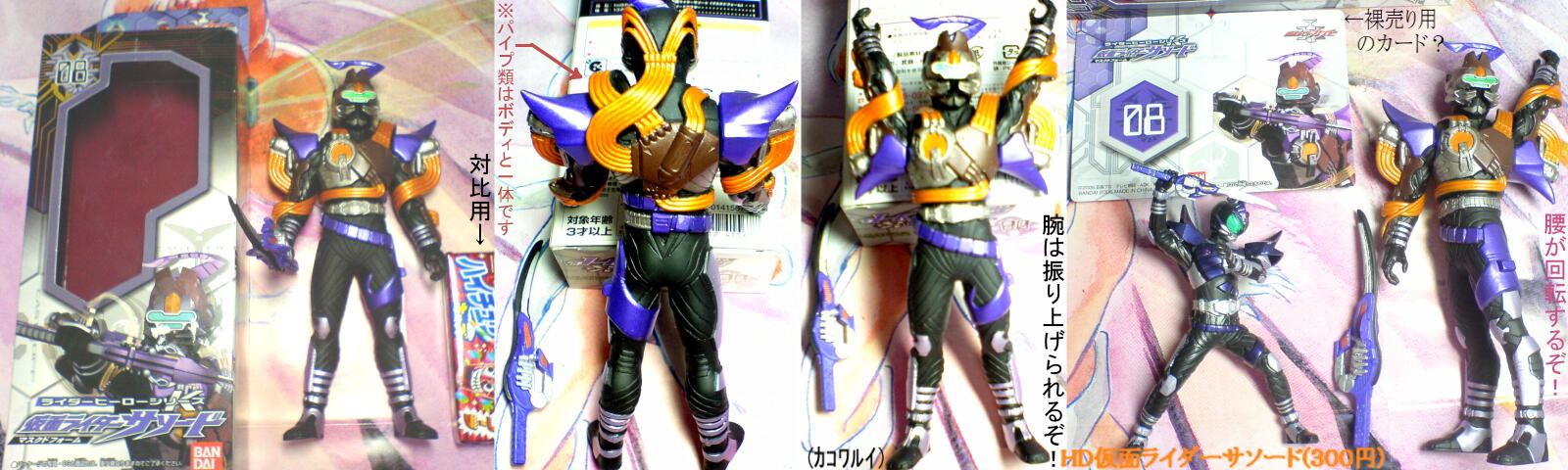いやー森永のチョコスナックはうまいねー。 古くはガンダム(初代)の時から同じ商品構成だった気がするけどw バンダイ系の食玩と違ってちゃんと菓子がメインだしね! で、ボウケンジャーでも出てたらしい。 ってかコレ6個買えってか?合体させても多分10cm未満だと思う。 それならたぶんバンダイ系で出てるデカイ食玩の方が良いのが手に入るかな。 「出てたらしい」って言うのは買うつもりで買った訳じゃないからなんだけど…… こういう缶に入ってたの。200円で処分してたから……。 中はシールとアクセルラー紙工作以外は市販の森永お菓子。 お菓子だけで500円いかない位かなぁ? で、この缶の定価はどうも1000円らしい……(最初の値札が950、次が475になってた) たけーーー!普通に買った人いるのか!? ちなみに昨日夜にこれ買って、2個あったからまだ後一個残ってたので、 今日午前行ったけどもうなかったw夜に?誰か買ったのか! お菓子詰めてもスカスカなほど缶がでかい(直径17.5cm高さ22cm)ので、 とりあえず食玩類の入れ物にでもしようかと。 昨日そのあとジャスコのおもちゃ売り場覗いたらソフビのマスクドドレイクの山が。 その中にひとつだけ坊ちゃまが居たので救出!(ドレイクは!!w) えっと定価700円だと思うけど元の売値598の半額、約300円でした。 なので315円売りのHDサソードライダーモードと比較してみましたよ! サソードヤイバー(箱の説明では丸ごとでゼクターとなってたが)とほぼ同じ身長w なんか子供向け玩具って昔から短足(短脚ね)なの多いんだよね……。 昔のソフビ人形とか赤ん坊みたいなプロポーションの奴多いからね!w コレもなんかトップヘビーな感じ。ましなほうだけど。 次ぎ行ったとき20個くらいはあったドレイクがまだ居たら救出しようかな……でも、 実はそれより3個だけあったセイザーゴルド(髭のオッサン)の方が気になってたりw 最後は前回から昨日までのライダーチップスR第2記録。 あ、リボルクラッシュだけ第一記録です。コンビニで残ってたので買った。 ……あ、カップリングウィズの表記間違ってるや!(普通“c/w”だよね……orz) カブトエクステンダーとかかっこいいんだけど……、 さすがに第2記録も相当集まったのでダブりも多くなってきたな~。 (第一記録はあんまり買わなかったので10枚ほどしか持ってないのですよ) 3パックあけて3枚ダブりだとショボーン……(´;ω;`) おまけ。 頭の中にコーヒーシロップ&クリーミングを詰め込まれて溢れ気味なピングーの怒り。 PR Designed by まめの (Customized by Lost R) Copyright © [ るまぶろげーとZ ] All Rights Reserved. http://ruma.blog.shinobi.jp/ |