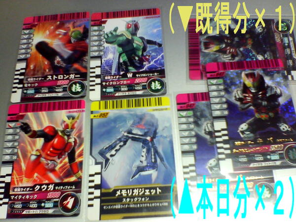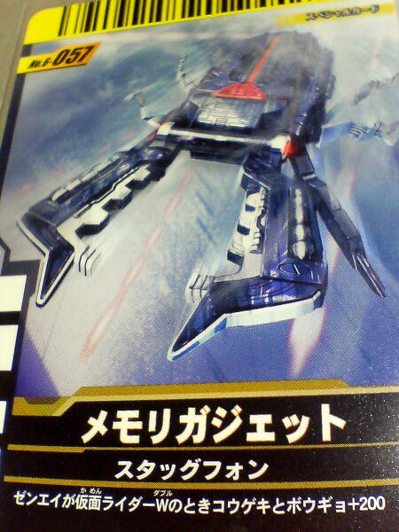 「いいスリッパだ……これがダブル世界のお宝か。」海東:談 こんなキャプはっても別にダブル本編に触れない! 冬映画のゲストライダーが発表されたけど触れない! WとDCDと半々の時間配分で通常2話分よりも各々短めらしいけど触れない! それよりあたし個人のガンバライドの引きがありえへん! やっと行動範囲で6弾×6弾の店が出てきたのだけど、 5弾ではLRDCDが3回も出たりして他にでないのいっぱいとかだったけど、 6弾も偏ってきた……。 ていうかLRまだ見てないよ! 1弾LRの再録ではあるけどSR(封入=遭遇率はSR)のキバキバが3枚も! キバ出て、なんかNが1枚でて、またキバ出たよ。多分個別のレーンの分なんでしょね。 いつぞやのように2枚ペアで出てたりしたわけではないので予兆も無くビビッた。 つか3枚あってもそんなに使わないよ……orz 能力的にはウーンだけどカッコイイSPをアップに。 スタッグフォンのイラスト、巨大感出すぎだろw ケータイなのにww Wが出てる時にしか効果ないとか使えねーーー。 他ダブってないのもNすらあんまりでてないなぁ。 (例によって画像はダブったのは基本載っけてませんので) ついでに。最近半額処分で買えたものたち。 9月棚卸で出てきたのか1期目のDCDとか売ってた。 ファイズ&カブトは銀塗りたかったので予備にほしかったのよ。 デンモモは……べつにwなんとなく。 ソード持てる手にでもするとか? 他にヒビオンもみたけどつい買いそびれたなー。チッ…(クレイドール風に) どーでもいいついでに、 この辺境では今頃「マクロスF」始めやがったよ?(しかも週に一話づつ) ……もうソフト売ってるよね?レンタルとかも。 なにがしたいんだよウルトラもやらない老舗TBS系局め! アメリカ三大ネットの1つみたいな名前の田舎局め! (メビウス辺りからおなじTBS系だけどキー局がかわったとかだからだっけかな) 実はこの地はすでに地球を遠く離れて宇宙の彼方への旅をしている、 マクロス級移民船内の仮想日本なのではないかと時々思うよ……。 (どうせ仮想ならもっとイイトコ舞台にするかな!) PR Designed by まめの (Customized by Lost R) Copyright © [ るまぶろげーとZ ] All Rights Reserved. http://ruma.blog.shinobi.jp/ |