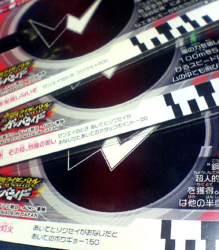 スネークオルフェノクのカードだけ出たことない!? つかあったっけ?(手持ちにではなくリリースとして) (調べた限り無いはず。8で馬と鶴が入ったただけで狼すらない) ともかく効果がすごいらしい?鶴さんSRSPキター! (2Rd間の効果でペナルティがその次Rdだから早く決着つけれるならキニシナーイ) ふつうのSPであるヨロイ元帥のほうは、 やはりライドパワー関連だけどあまり得しなさそうな効果が泣ける。 (あいてにAP+30する代わりその次のRdでライドパワー-30(%?)<遅くね? 内容的には水曜日に起こった話です。 ヘビさんも善玉だけど生き延びキャラだからカードにならないのかな? ムカデさんも生き延びキャラだからカード化されないかな?(つか嫌味キャラで悪印象だしw) というか、アクセルのSR2枚目来ましたorz(コウエイはSR以上じゃ希少だけど使いたくはないかも) 前衛のアクセル無いのかよーー!(8弾現在まだ良いのは無いみたいorz) ファングジョーカーRはやっと初排出だけど、スロット目が低すぎて セブンスタンプラリー版の偽R(キラ入りだけどN)のほうがマシなレベル……。 (70,70,80,80,60,60とかAPまけるやろ。速ゾクセイでもないし……。) 一番上がFJ,中がRのCJ、下がHM。 これやってたとき、初めてやるらしい少年(幼稚園くらい?)が その母&さらに弟と一緒にきてて、あたしが始めたとたん後ろにきて、 出たカードがっつり覗いたりとかそわついて仕方なかったので (当然ながら)その1プレイ後に代わったんだけど、 なんとコイン投入後まちがえて「カード買う」押しちゃったらしい。 手には持ってきたらしいヒーロー1枚と今出たばっかりのヒーロー1枚。 画面にはカードを続けて買うかの選択がむなしく……。 あんまりだったのでちょっと待ってねといい自分の100円使って「カード買うつもり」で一人で遊ぶを選択し代ってやることにした。 (なおこの時点でも母親は弟抱っこで二つとなりのダイスオーをしてて見てみぬふりw) しかしあたしがコイン入れて出たカードまで自分のものにしようとする少年! (チョイチョイ!!さすがに渡さなかったぞ初顔WHMだったしw) まーそれでもガンバラ初めて(難しい選んじゃったしw)らしく ボタンもよくわからない感じだったので、横についてレクチャー、 SPももって無かったのでXライダーをプレゼント。 ライダーラッシュではボタン押しまで手伝った(やりすぎか?) 結果、むずかしいなのに勝利! (ゲキレツ出たので相手のパワたまらないうち必殺出せた) そして……EXステージ出現。(え~~~~ムリ~~<心の声) とりあえず「お、おまけにいけたよ」といい放ちとりあえず去ったw さすがにExは運任せくさいので教えようにもなぁ。 その後、見に行くとやはり負けていたけど、 隠れて手持ちのNカードから5枚ほど見栄え重視セレクトしてあげておいた。 まーその後ガンバラまたやるのかどうかしらないけどね。 一枚だけ持ってたとこみるに(Wだったみたい)雑誌付録あたりで初めてカード入手して、 ガンバラやってみたいからっておかーさんにつれてきてもらったんだろうかなぁ? つかおかーさん弟もいるから大変だろうけどもう少し教えてやれよw (ダイスオーやる暇あるんだしさー。てか弟キラキラしたダイスオーカード手に持ってたよ?……今出したの??すげー。) ちなみに以上は昼ごろの話で、 この店で夕方またやって、さらに別の店にも行った。(都合3回行ったことに?) 全部で何枚やったか例によって秘密だけど上の7種8枚(すでに内2枚はダブりだし)のほかに ダブりがようけある、とだけいっておこう……。 ちゅかファイズアクセルまだN一枚すらも見てねー!!!! PR Designed by まめの (Customized by Lost R) Copyright © [ るまぶろげーとZ ] All Rights Reserved. http://ruma.blog.shinobi.jp/  |