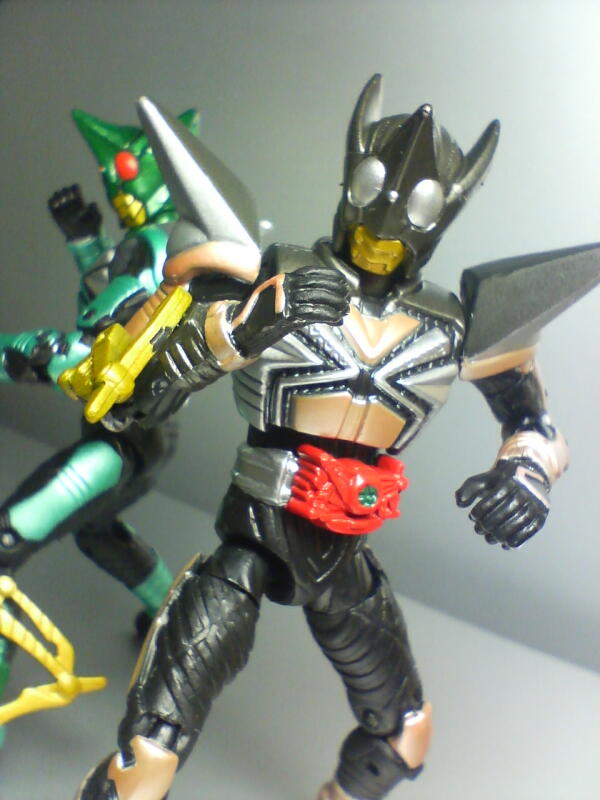 モーションリヴァイヴシリーズのパート1のほう。 もう置いてるとこ無いし、バラで注文も出来ないから箱(box)で注文!6+secret1で7種なのに8個入り。一つは必然的にダブるわけですよ。 もう既ににもってるロッド×2、キック×2、ダークカブト×1は無条件ダブリ確定……orz こんな箱。店頭で見ることもあるけど、 ディスプレイ用にふたが立ててあるし大半は切り取ってあるから新鮮かも? 中はぎっしり。そうそうこの先買う人がいたら、あくまで参考だけど(この画像は天地逆になるかな?) 後 と、『出荷状態では』こうなってるといわれております。(実際そうだった)カブト (ランダム) キック ソード ロッド パンチ ダーク アクス 前 運が良ければ店頭でそのまま配置に出くわすかも?(まー大概誰かいじってるw) てか第1弾は箱底面の接着が弱くてボコボコ開くため、 いったん箱から全部出してテープで留め直してるコンビニすらあったので、 そういうとこだと配置どおりの可能性はまー無いですねw (第2弾は接着がマシになってる気がした。) で、カブト。2弾のガタックはメタリックなのにこっちは普通色……。 てか1弾のホッパーズもメタリクじゃね?主人公なのにこのていたらく!指差し没画像だけどもボディ状態がわかりやすいから採用w 指差しパーツはダークには無いです。武器もガンモードとクナイモードの違いが。 しっかしこのカブト個体差なのか関節ゆるゆるで~~。特に右肩。 クナイなかなか構えらんなくて参ったぜ……。どうすれば緩み抑えられるかなぁ? 左手で柄を押さえさせようかとこんなポーズに。(結果押さえなくて保持できてた) ミスってダブトのほうが目立っちゃったw失敗失敗でもかっこいいから載せる! 「お前らはいいよなぁ……主役とその影だからな。どうせ俺達なんか……。」 「兄貴、せいぜいカッコつけてみようぜ……。」 お、いい感じのが撮れた!(一応ホッパーズ結成回の最終カットをイメージ) 「ざ、ザビーなんか!未練なんて無いぜ!」←絶対嘘だ。カゲタロスめ。 全体的にキックよりいい色あいなのに何故かホッパーゼクターP面が原色赤ぽい……orzこんなじゃないだろ!もっと茶系オレンジみたいな……。 まだだ!まだ電王系2種ある!でもそれは次回分へ……。 To be continued. PR Designed by まめの (Customized by Lost R) Copyright © [ るまぶろげーとZ ] All Rights Reserved. http://ruma.blog.shinobi.jp/ |