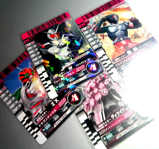 (↑えっと、セガラリーのテーマ?曲風に読んでください……) やってきてしまった! ちなみに地元でw 普段行ける範囲ではなんとか7軒あるんだけど、 最寄2軒(そのうち一軒は極めてよく行く)以外の5軒をめぐった。 押し集めるスタンプは4個なので4軒目でカードもらえたんだけど、 実は途中の3軒目で台紙がレジバックじゃなくスタンプ横においてたので、 2枚目もらってこっそり2回押しをしはじめたのよねw でも片方は最後の1枠まだ押してないので、後日最寄のどっちかに行くことになるかもしれない。 もらえるカードはこれ。Nだけどキラ入ってます。 3歳くらいのちっさな子がお母さんに連れられ台紙持って巡ってるらしいのもみたなぁ。 ちっさい子はNでもキラ嬉しいんだろうなぁ。 スキルは地味。まー使えねーな、って感じではあるw でもせっかくなのでおれは!ってかんじで帰りにガンバライドやってみたんだけど、 (休みはいってる日中だったけど昼ごろだったからなのか子供居なかった) コレに6-012だったかのSRDCD(スキルが攻防必の全+200)つけて組ませたら、 相手はブラックブラックコンビだったかな、ちょっと嫌かもーと思ったけど ルーレットの効果も含めボウギョ1000位になって(FJもとは350なのにw) 1Rdは拮抗からラッシュでゲキレツとれて、コウゲキもめっちゃきいてのこり400台にw 2Rdも同じくラッシュからゲキレツww しかもSPでキャッスルドラン使ったら、それだけでCPU側ペア昇天! なんじゃこりゃーってかんじだったけどせっかくゲージ残ってたのにExなし。 ちなみに排出カードは龍騎(初)で。 この龍騎はスキルが「前衛時に相手と同属性なら相手AP-20」となかなか。 力のコウエイでイイのいればねー。(6-012は力だけどさ) 2コイン目はゼクロス(既得)だった。 龍騎「ドラゴンライダーキック」ZX「ドラゴンナックル」……何このドラゴン責め。 2コイン目はSR電王ライナーに4弾SRφ'sで、響鬼&誰だっけ?に普通に勝利。 またEx行けず。 今日もセガ系某店はイイの出してくれないんだろうと思いお金もないからもうやめて帰宅。 なおFJのカードはこのシール&ダブルチャンス応募券の入ったA5袋にはいって渡されます。 シールだけでも買えば値段つくんだろうになーw そうそういっこ上の画像で一番下に隠れてるDCDコンプ、 最初に台紙もらった店で買ったチートスについてました……。 「また!?」って開けて声にだしてしまったよorz 10種のうち3枚目で早くもダブる確率を誰か計算してくれてもイイけど? 別にしなくてもイイ。 (勿論単純にはそれぞれ独立事象で1/10だろうけどさーなんかねー夏DCD結局来なかったのにねー) PR Designed by まめの (Customized by Lost R) Copyright © [ るまぶろげーとZ ] All Rights Reserved. http://ruma.blog.shinobi.jp/ |
