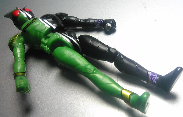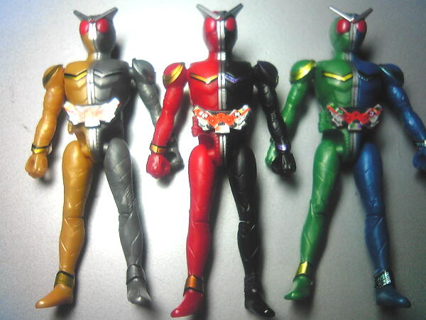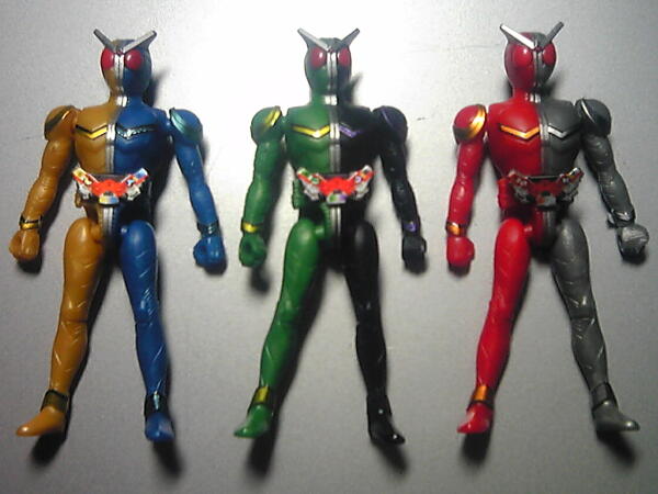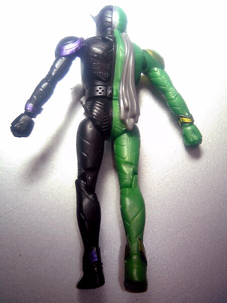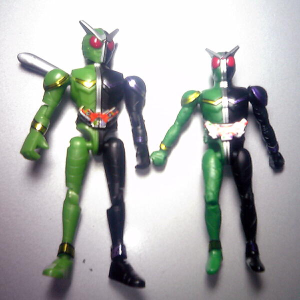 まー9なんですけどね。FJは出てないから。 FJあってもあれは員数外的な存在で組換しないみたいだし。 つーことでなけなしの(毎度毎度だけどマジそうなんだもの) 100円玉2枚を入れて回したら、狙い通りの緑と黒が!やっほぅ!! ……つーかバイク2種でも緑と黒だったわ。危ない危ない。 ライダー肢体パーツが見えたから安心はしたけど。 FJ,CC,JJでWって今12フォームもあるんだなーすげーなー。(棒気味) パーツ。シール置き忘れてた。 まーどれも同じ構成で武器種(CJはマフラー)が違うだけ。 なんかジョーカー側の赤目塗りがはみ出してた……orz ファングジョーカーじゃあるまいし凸凹。バックには片マフラー付き。 全フォーム半身のベルトにマフラーパーツ下部固定用穴があったの気づかなかった。 LT,CJ,HMの基本3フォーム。(最初の画像もそう) LJ,CM,HT。赤青のメタルダーカラーはやはり目立つ。 (キカイダーが元祖だろっていわれそうだけどキカイダーは加えて黄ライン入のイメージ) LM,HJ,CT。 結局、翔太郎側で色味あるのトリガーだけだから青入るととりあえず派手w 食玩のCJと比較。 食玩フィギュアは伝統的に握りがでかい。(そしてコの字w) 食玩ハードボイルダーにまたがるとやはりCJは色が一番似合ってる。あ、もともとのガチャボイルダーにまたがったのとってないや。 まー食玩ボイルダーもブースター付きの一回り大きい方もあるしね。 『ジョーカーエクストリーム!』 キック技がトドメなのはサイクロンジョーカーだけ!(そうでもない) ベルトは分裂するんだっけ?とりあえず外さないとずらせないからねぇ。 つーことで~奇跡的に「ダブらないで」3態揃ってくれたガチャ「ダブル」でしたっと。 PR Designed by まめの (Customized by Lost R) Copyright © [ るまぶろげーとZ ] All Rights Reserved. http://ruma.blog.shinobi.jp/  |