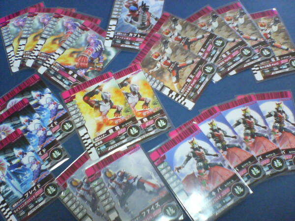 なんか文字一個多いけど気にするな! 昨日水曜日の事だけど、 もう無いかとおもったらまだパン(ホイップサンド)あるとこ見っけて2個買った。 (今まで18日消費期限の見たのが最後だったけど22日期限の奴だった) セブンイレブン店頭(駐車場)にヨレてうち捨てられた響鬼エンブレムカードが見えたのだが…… ……はいはい俺参上と鍛えてますから。 捨てられていたヒビキという前触れ出てたってわけね。 ひとつは夕食。もう一個は翌朝食(今日ね)にしたよ……。 結局、ダブりはこんだけあるのだよ……。どうしよう。 つかキバ呪いは序盤だけで全体的に満遍なく来やがったデンオウが一番多いのね。 (このほかにDCD以外の9種各一枚ある分はファイリングしてある) 今回のは再録バーコードだから特に集める必然性はないんだけど、 食品のおまけと思うと安く感じちゃうんだよねぇ。 実際はたとえばスナック菓子で半分近くがガンバラの値段だとは思うんだけど。 しかし揃わなかったのは口惜しい。 そんでパン買った後(買ってすぐピローだけ開けたから) 腹いせにガンバラやったよ。3回CPUと戦って、 1.まけ 2.かち>EXで負け 3.ボロまけ ……なんだかなぁ。 結局速属性コンビ使ってる時が一番勝つんだよねスロットで勝てるから。 最後に一枚カード買うやって計4枚。結果は既得ばっかりだけど、 ……ちょ、この流れはいつか見たぞ!?2枚セットで出た時の奴だよ! この後はアギトが来るってことじゃん!(その場では勘違いしストロン顔と思っていた) もう全然やる気なくなって撤退。 ちなみにそこ4&5の台だったから5弾のレーンに偏って4枚来たらしい。 4弾出てもどうせ……FARとかこないしね。(まだ入ってはいるんだろうか?) なお上記の出来事は水曜日のことですが、 木曜の今日Jusc〇で一枚カード買うしたら既得5弾Nリュウキ。 もうこれ何枚もいらんわ!目新しいの来いや! PR Designed by まめの (Customized by Lost R) Copyright © [ るまぶろげーとZ ] All Rights Reserved. http://ruma.blog.shinobi.jp/ |