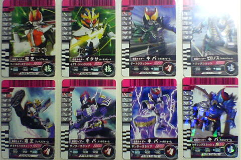 ガンバライドその後。 200円のジャンボカードダスベンダーに、カードポケットリフィル入り ガンバライドカード2枚セットってのがあるのでまわした。3回。 ちゅかそのまえに普通に1回ゲームやったか。 (第2弾解禁以降初、ってか過去一回しかしたことないけどw) そのあとリフィルまわし、さらに別の日2回げーむした。 上の画像の表面2枚がそのとき(別の日)に出たやつです。 日付変更。 まーゲームしないと技は手に入らないんだけど、出づらいらしい……。 ヒーローカードは玩具付属とか雑誌付属とかいっぱいある割に、 同一ライダーでのバリエーションは少ない(ちがっても技種が程度。)から、 ゲームではもっと技いっぱい入れてほしかったなぁ。やらないけど。 カードポケットリフィルのほかデータシートもついてるのでちょっとお得な気もするが、 カード一枚単価で考えればゲームするのと何も変わらない一枚100円。うーん。 裏面が2枚のカードを連結した絵柄になってました。ブルートーンだけど。 右下のガルルが初ゲット、横のドッガが2回目のゲット。 この8枚と最初の電王ソード、クウガマイティと、今10枚か。 ところでこれほしいけどうってない。 田舎だからジャスコしか望みないのだが通販も在庫見つからない。 一枚1Pポケットの携帯用ファイルね。DCD一枚ついてるしー! 4倍のプレミアつけてアマゾンで出してる個人とか居りやがる。 バンダイー、はやく再販してくれーー! ちなみに4枚リフィルのための普通のカードファイルは1200円位するので買えません……。 PR Designed by まめの (Customized by Lost R) Copyright © [ るまぶろげーとZ ] All Rights Reserved. http://ruma.blog.shinobi.jp/ |