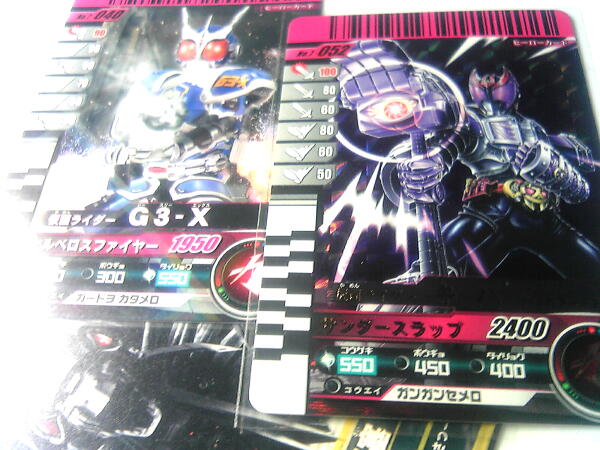 やったーW基本3形態そろたーー! ……CJだけサイズ違うorz なけなしの金でガチャってしまって本当はCJほしかったんだけど、 まーダブらずサイズ違いでも3態になったから良しとしよう! 同じく初ガンバラの結果は後ほど。 うそです大抵のことに不平不満をいだいております。 さてヒートメタルですが。 カプセルえっれーキツくて開かなかったけど(うちであけました) 子供だと開けらんないとイラついて足で踏んだりとかすんだろうなとかどうでもいい想いもよぎる。 第一印象は「メタルシャフトみじけー!」でした。 食玩(なりきりキット)ほどの寸詰まりプロポーションではないけど劇中つーよりDX玩具バランスだよねぇ。 組んだところ。 撮るまえに組み替えて遊んだせいでバックルがLTの物になってました……。 しかしメタルシャフト細いからハンドルに合わせた握りの穴にはスカスカなのよね……。 (中央付近の少し太いトコだとなんとか固定するかな?) トリガーマグナムと違って背中につけとける穴があるからまだいいけど。 あ、そーいやトリガーマグナムあれから行方不明のままです……orz とりあえず組み替えて遊ぶよねー。 2×2では4態しか再現出来ないけど3×3だと9態できるんだよねぇ…… CJやっぱほしいなぁ。 でももうダブりそうだから回すのいやだなー。 食玩よりこんまいバイクとか要らないしなー。 さて、じつはガチャより先にガンバラやったんだけども。 本当は一回だけ!と思ってたのに結果3回。 でも3枚目ドッガSRでたー! (ちなみにこのところイイのが出てなかったセガ系店舗でです) これって初期弾の再録なんだっけ?もとLR? G3-XのRは初だけどSPクライス要塞はダブり。 そういや今日3回戦ったうちExの1回含め4回中3回敵これ使ってきたな。 ドッガスキルは地味……G3はいわずもがな。 G3-X前衛でドッガ後衛でやった一回は見事負けたよ。 (普通ならより強力なドッガを前にしたいとこだけどG3-Xの活躍?見たかったの) G3-Xもともと必殺威力弱いからクライス使われて必殺効果が500ないんだモン……orz 必殺返しされて負けましたよ。 G3-X視点のターゲッティング画面とか演出はカッコよかったんだけどねー。 先に必殺はなてたのに余裕で負けるって悲しすぎる。 PR Designed by まめの (Customized by Lost R) Copyright © [ るまぶろげーとZ ] All Rights Reserved. http://ruma.blog.shinobi.jp/ |