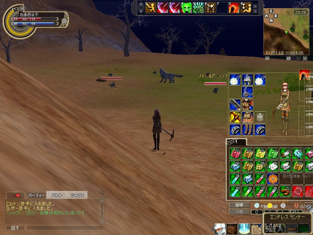 なりたいな~ならなくちゃ~ゼッタイなッ……なりたくねーよウワァァァンヽ(`Д´)ノ スカウトマスターなんてのはありませんけどね。初期ポケモン風に言ってみた。 あのユニバースな方ではマスター職とかがあんまいい感じでもなさそうですが。 うちの子(キャラ)たちは誰一人マスター職成れるの居ませんでした! 31日深夜修正:課金期間終わるので見てみたらブルックだけはファイマスター?になれるらしい。 でも武器系統がなー。ツーハンド系ばっかりだしS鎧(shieldline)しか着れないしなー。 前回のドルアーガの不思議の塔から絶体絶命シーン。まーしんだけど。 仲間が2階に行く瞬間だったので2階から復帰出来ましたけど。 (if塔内で回線切断などが起っても同じPTに復帰できる。ちゃんと現在皆が居る階へ。) 麦の中ー。意外と密に植えてある。 で、結構グラフィックパワー食うためかオブジェクト最高表示じゃないと見えないらしい。 これを同じ場所でゲーム内オプションから変更したら、 こんな風。一気に農閑期になっちゃう。 ドルのクラ意外と重いから(MHF<PSU<DRUAGAて感じ。美麗度は前2つに負けてるけどw) グラフィック水準設定下げたいんだけど、そうするとえらく地味なんだよねぇ。 最近は、描画水準はあまり下げずかわりに解像度を下げたりしてる。 なので今回1024幅と800幅が混在してると思います。 グラフィック設定で影あるなしとかも決めるんだけど、(現状自分だけ表示にしてるw) どういう計算だか解んないけど変な影の出方が~~~コエエエエエ! ポケットに入れらんない程でかいモンスターシリーズ! でかい鼠。前も載せたけど今回周りに人が多かったので比較できやすそうだから。 でかい狼。銀狼もそうだったけど。別の場所なのでランクの違う敵。 さらにでかくて黒い狼。かっけー!でもこえーー! 地道に経験あげてんのに、油断すると複数の敵に囲まれて殺され、デスペナで経験減らされたりする。 右上の経験ゲージの黄色がなくなってもLVは下がんないけど、 その代わりマイナスの紺色ゲージが出来ちゃう。これを減らさないと黄色ゲージが出てこない。 万一死にまくって紺ゲージがいっぱいになったらまた色替わるんだろうか??ガクブル…… スカウトのスキルで自分にバフ!ばふばふ! バフとかデバフとか普通にゲーム内名称にしてるオリジナリティないセンスが嫌い。(しかもカナ) ならもう“強化/弱体”でいいじゃん。もしくは“UP/DOWN” でいいじゃん。 あーまた塔に登んないといけないけど、PT入るのめんどいなー。(画像は前回の残り。) 黒スライムが透けてるのがなんかいい。(これ再掲じゃないよね?) PR Designed by まめの (Customized by Lost R) Copyright © [ るまぶろげーとZ ] All Rights Reserved. http://ruma.blog.shinobi.jp/ |