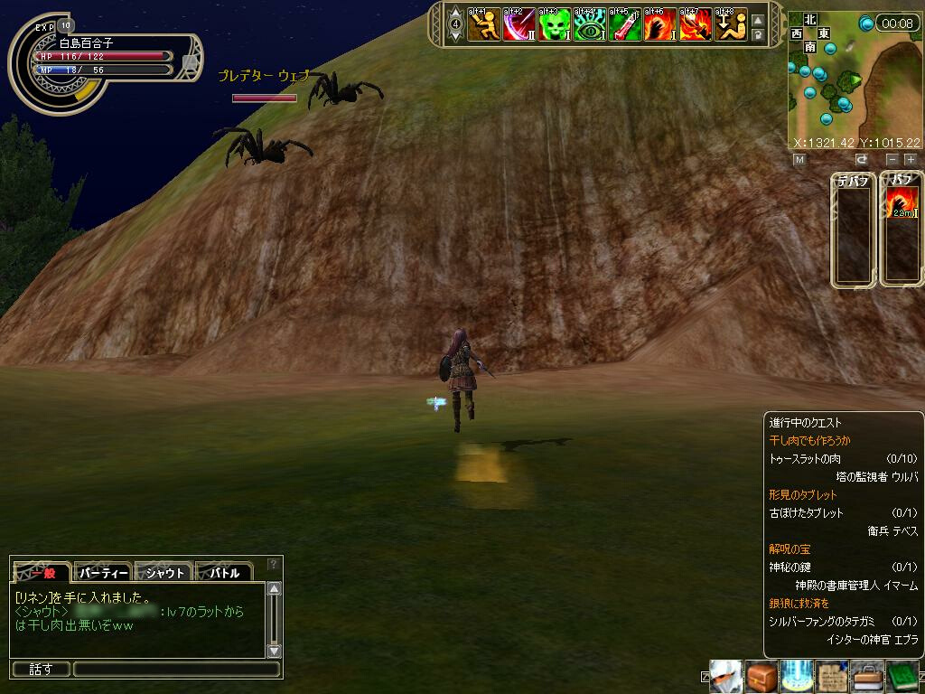 ちゃーちゃちゃちゃーちゃちゃちゃちゃちゃちゃちゃちゃちゃーちゃちゃー♪ ちゃじゃわかんねーよ!だいたいドラクエ2だし!マキノアンナ今ダンサー(先生)だし! ドルアーガMMO。悔しいので相変わらずソロでやってるよ! メイジとかドルイドとかが横から魔法で先にmob唾付けするのはまだしも、 同じ近接のソルジャーがヘイトをひきつける(敵がそっちに走り出す)魔法?を 使いやがるのにはなんだかむしょうに腹が立つスカウト・しらしまゆりこ。 なんでスカウトだけ遠距離で使える魔法(スキル)が無いんだよ!!差別! ちなみにドルアーガMMOでは横殴りをやめろと言うシステムも運営方針も無いしね。 (この場合横殴りじゃなく、遠くから自分の獲物ー!って唾つける行為だし) さてーPT組んで無いのでなかなか機会のなかった銀狼。 アダルトウルフのレアモン的な感じで定期的に?出現しますが、 出現場所にはそれ狩る目的のPTが陣取りやがっててずっと触れない数日でした。 やっとよりなんどのたかいほうへ人口が移動したのでその辺で狩してたら、 ひときわ大きい~おおかみに~~しらしまゆりこが~~であった~~~。 横の通常アダルトウルフと比べてね。 と、銀狼に挑んだら後から横のアダルトまで掛かってキオッタ。もう雑魚だけどウザ! とりあえず倒したーー!イシター様御加護ありがとう!(?) てめーもしねやーーー!→アダルトウルフ とりあえずこれでずっと保留してたクエストが完了しました。せいせいした! なお、こういうヒュージぽいのほかにも居ますが特にターゲットにはなって無いみたい? (だって誰も待ち構えて狩って無いんだもん) でかいネズミ。普通のが近く居ないのでわかりづらいけど、大型犬とカバくらい違います。 参考に普通の。(↓) これ遠くて解らないけどでかいレア蜘蛛が2匹連れ立って山を登ってた。 おそらく誰かが引き連れて逃げてたんだろうけど、二匹同時って……奇蹟。 このときは一匹でも勝てる雰囲気じゃ無かったけど、 後に一匹倒した時でもヒィヒィでした。2匹て無理やわ。 なおこれが普通の大きさ。 ラジャフ街道あたりの蜘蛛と比べたら十分でかい。(ジャイアントスパイダーだからね) けどプレデターもジャイアントとそう変わらない?とおもう。 以上しらしまゆりこでしたっ!バイバ~イ!ノシ (F12押してコンソール消せる事にいまさら気づいた…… さすがに戦闘中とかはヤバいから消しづらいけどね。) PR Designed by まめの (Customized by Lost R) Copyright © [ るまぶろげーとZ ] All Rights Reserved. http://ruma.blog.shinobi.jp/ |