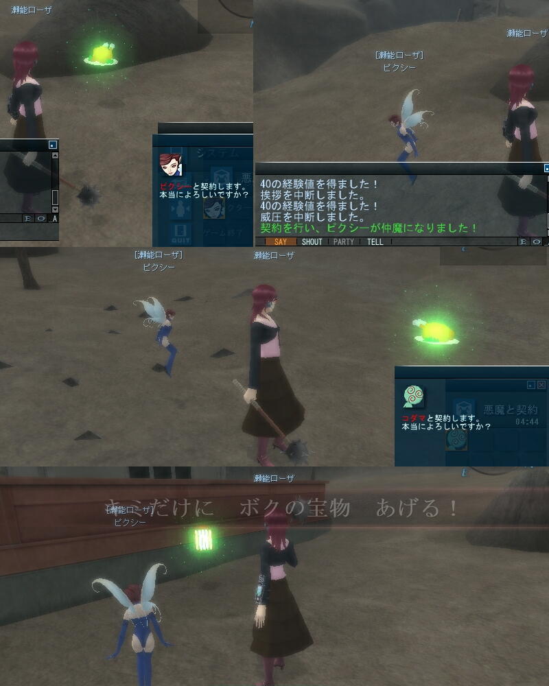 うはwモモタロスwwww……いや、imagine繋がりで? (詳しくは1月28日からの仮面ライダー電王をお楽しみに!?) 前回撮ってなかったタイトル画面?みたいなのを。 あとウインドウサイズはoption.exeを起動することで変更できました。 800幅(TMOと同じ。PSUもコレにしてるな)にしたのは良いけど、 窓の中の小窓密度が上がっちゃってこれはコレで不快。どんだけでかいモニター居るんだよ! 映像効果もグラボの負担掛かりそうなのがデフォで入ってるしな……。 なんか眼鏡とヘッドギア売ってたので買ってみましたよ 何か効果があるのかどうかわかりませんが。ハナゾノっぽくなっちゃったな。 眼鏡と髪色だけって話もありますけどね!ポニテにしてたらコトだったな。 仲魔勧誘交渉は同じコマンドを気力の続く限り連発したらいいらしいと解って、何とか勧誘成功! ピクシーに続いてにっくきコダマも取込みました!アタックチャーーーンス! 交渉が失敗しても、たまにモノが貰える場合があるのはメガテンの通例。(の筈) あんまり行ったこと無い辺りまで脚を伸ばしたら、元祖メガテンの主人公の相方ケルベロスが! どうも門番的に居るみたいです。その横の緑色のカーシーにも惨殺されましたよ? とりあえずここは通れない、と。 しかし“ケルベロス”なのにずーーっとメガテンでは3つ首にはなってないんだよね確か。 装備が耐久値あるので着替えました。ブラウスだけはピクシー?がボロボロおとしますが、 他の部位はないので一番安いのを買って着ております。 でも初期選択で選べたティアードスカートもう店じゃ売ってないの? 街うろついてたら邪教の館みっけ!相変わらずぁゃιぃ……。 手持ちのピクシーとコダマ合体させると何かなー?とおもったら、 ……お前カヨ!!!丸かじりされたくないよ! ていうか自Lv足りないので呼び出せないから合体させなーい! オマケ。時給8マッカって現代貨幣価値的にどんなモンなんだろう? 1マッカ=100円程度かなー?そしたら美味しくないバイトだろうなー。 (これでも田舎では十分ましだったりするがw舞台はスギナミだしなー) PR Designed by まめの (Customized by Lost R) Copyright © [ るまぶろげーとZ ] All Rights Reserved. http://ruma.blog.shinobi.jp/ |