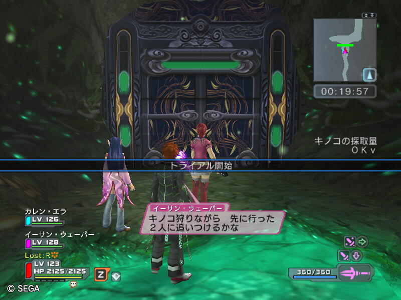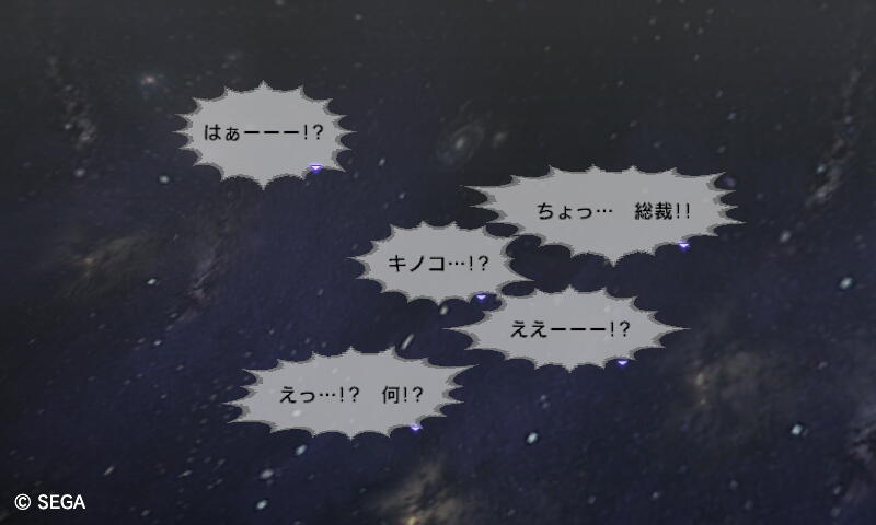 ストーリーミッションも第6章だかがはいってるのでやってみなきゃーとシブシブ。 なかなかシリアスな展開だぜ! こ、こんなすごい選択を迫られるなんて……「PSIII~時の継承者~」以来かな? とりあえずグラールのかがくりょくならおにゃのこどうしでもべいびぃつくれれそうだしね!? もちろんウソに決まってますが。同行者を誰にするかって話。 結果は多分どっち選んでも別の状況になる予定。 でははじめの方からー。あとで自分でやるつもりの人は見ないでね。 総裁ライア・マルチネスに呼び出されたガーディアンズ。当の本人が遅い。 (もちろんこれは一部幹部だけってことだろうけど……あれ、ブナミいるよ?!) きおった。 一同そのコスチュームに唖然。 総裁らしい格好をしろと後見的立場のネーヴ先生に言われて厭々着てるらしい。 恐れを知ってる様で知らないトニ男。「言われると思った」とあしらうライア。 前回までのミッションでイルミナスの脅威がとりあえず消滅したので、 一同にこれまでの労をねぎらうライア総裁。 そこでちょっと自分をアピールするかどうかの選択。 と、油断させといて 一喝。やはりライアはキツイお人だった。 そして、肝心の作戦内容は!! …………。 これで毎回お馴染みオープニングムービー突入。なんじゃこりゃw まーいろいろあって特殊なフォトン含有きのこを集めてくれって首脳会談で決まったらしい。 従順なガーディアンズたち。 一応ハビラオ禁止区のフォトンには中毒性あるんですけどねー。 そして、最初の画像の選択であるようなくだりのあと、ルミアが兄イーサンを、 マヤが妹分カレン・エラ(今の幻視の巫女・ミレイ・ミクナ)をつれてくるということに。 待ち合わせ中、マヤとルミアはプレイヤーほっぽってどっか行っちゃった。 そこへイーサン、続けてカレン(巫女姿)がやってくる。すげー疎外感w とりあえず退散をえらんでみよう。 とめられた。マヤとルミアの事について問い詰められる。 カレンの地がでるとけっこーこわいwライアよりこわいかも? まーイーサンたちも今は遠距離ながらも相思相愛?とはいえ、 最初はカレンが鬼教官だったわけだしなぁ。そのころの畏怖の記憶があるのだろう!!うん。 とりあえず3人で進むことになりましたが。すげーお邪魔虫感が!! 画像多くなったので以下次回! PR Designed by まめの (Customized by Lost R) Copyright © [ るまぶろげーとZ ] All Rights Reserved. http://ruma.blog.shinobi.jp/ |