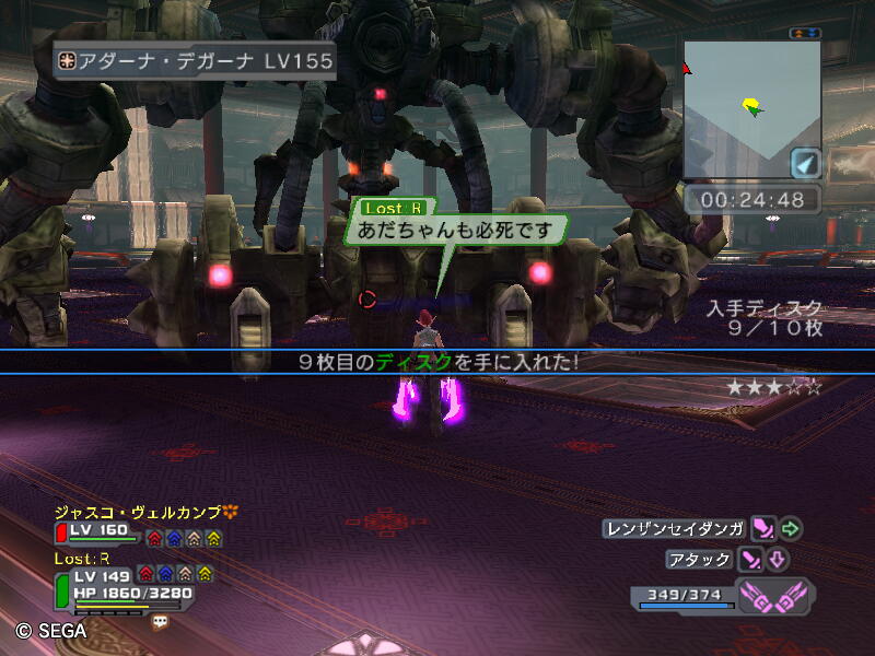 A難度とかにいってみた感じの画像。 シノギリくんのでばんここだけー。 だってきたと思ったらすぐ「あきた」「ねむい」だもんね。 まーリアルライフが忙しい最中みたいだから仕方ないけど。 モナカじゃないよ!サナカだよ! つーかやはり物欲センサーはバリバリ発動してるね! なるほど、アリガタ・デガーナ、ということか! ……違うかッwwww(嫌な人風芸人風) つかでませんよアダーナ・ユニット。 まーあたしゃーたまにくっついていって見てるだけだけども、 邪巣弧は一人でもやってるからあたしの3,4倍を下らない回数こなしてる。 へたすりゃ10倍やってたのかも? その欲求が果たされず、怒りの矛先はディマゴラスに。いわゆるとばっちり? まー一緒に出てくるからあかんのやけどな。 これはレアルートでは無いものの、比較的珍しいレアエネミー。 てかすげーフットワーク軽いんですけど! これでたら自動的に次の面もレア敵配置らしいです。 まーどっちも特にいいもんくれませんでしたけど。 まーあたしはヌイミ作成用にルンガ・エッグでると嬉しいんですがw てかこれ道端の箱(岩?)から出るけど、イルミクラ専用アイテムのためか、 このイベントミッションでもS2でしか出ないようですね。 (Sまでのは無印時代のものの為。無印新規さんのトレーニング用だしね) さー、レアエネミ以外にルート自体がレアな出現のものとすげ変わってしまうが場合も。 こ、これはデルタで大豚様の代わりに出ていたけど、大豚様の落とすガルドが 皆のお目当てなのでこれまたアリガタ迷惑だった奴では無いですか。 このルート次の面はジャッゴがでます。 そーいや昔やったときジャッゴ・アクテ(浮き輪&水中眼鏡装備)だったような。 あ、ジャッゴ倒した後の画像だった。 しかも横のカットインは出かけ?消えかけ?でみえてないしw 出たアイテムをすぐ拾っちゃったので邪巣弧がご立腹です。 こちとらいつPC凍るかわかんねーから落!即!拾!の癖が身についてんだよ! この発言の真意は邪巣弧のブログでも見てみたらいいと思うよ! レアルートのボスはこれー。もともと2段階ですね。 てかHIVEあんまいったことないからイベ以外で遭った覚えがほぼ無い。 ダークファルス(蛇神2)が隠しボスで、ダルクファキスが本ボスで、 昔のPSにはダルクファクトとかもあったっけ? ……それ海外版だっけ?もうようわからんわ! 緊迫するなかもカットインチャットでこの応答をする事が義務、 というか抜き打ちテストのようになっております。 うそです。 ってかすげー邪巣弧の「言ってねーーーー」の返しが早いです。異様に。 で、こっちがメインの顔なの?結局どっちなの? せっかく切り張りしておいたのに前回載せそびれたPMマドカ進化シーン。 まーふつうだけどね。ほかと同じだし。 で、5回目には同系別型に変わりました、と。 現段階で名前は“マドカ・ハナゾノ”となっております。 (眼鏡キャラになったので花園瑠瑪(@TMO)の姓と混ぜた) 主よりニンゲンポイ名前になっちゃった!まいいか。 PR Designed by まめの (Customized by Lost R) Copyright © [ るまぶろげーとZ ] All Rights Reserved. http://ruma.blog.shinobi.jp/ |