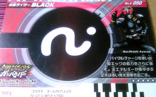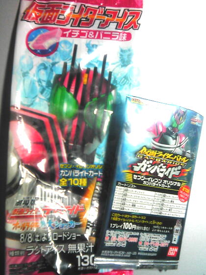 かんびじゃないよかんみだよ。 がんばらいどこうしきにも甘味処あるからね!(<あっち和風だろ) いつもはトイズ&ガチャカテゴリだけど今回はショクガンカテ。 ショクガンバラ~~~イド!!ってことだ! (追記:後に他ガンバラ記事に合わせてカテ変更しました) セブンなんちゃらいうコンビニで仮面ライダーアイス(ディケイドアイスではないらしい)でてた。130円売りでガンバラカード全10種から1枚封入。(小袋入り同梱) アイスとしては品質の割りに高いけど、ガンバラ+30円でアイス付と考えれば腹も立たないかな? ……まさに命がけ。(個人的事情による) 「くるならーきてみろーじゅうめーんきー」てかんじでした。 画像は昔々のHGガチャです。なぜか2つあるorz 何の話かって?もうガンバラ5弾になっちゃったらしいですわよ奥さん! しかしこのシステム凄まじ過ぎw(コンプフォームまだ出してないけど) おまけ雑記: 昨日の日食。薄曇でみれなかった。 夕方晴れてたのにねぇ。(まだ梅雨開けてないらしい) ずっと観測してたら見れたのかもしれないけど。グラスも持ってないしね。 てか子供んとき(日食時じゃなく)普通に太陽じか見してたんだけどw 何べん失明してたらいいんやろな?(もちろんレンズはさすがに使ったことはないです) 太陽見てくしゃみするとかやってなかった?(なんか名前ついてる反射行動らしい) にしても、まさにブラック復活にふさわしい年だったんですねぇ。 ちなみにこの十面鬼さまも……?? 前回までの「ケータイ捜査官ミニフィギュアコレクション~半額編~」は! ミミミミ・見ってね~♪(都合によりカテちがって最後におまけでのっけたもんで) つーか、今回もおまけを先にやるぜ!やるったらやる! ショートコントー、ガンバライドー。 昨日にちようびに久々やろうと思ったらおこちゃまが張り付いてるとこばっかりでやれず、 今日その鬱憤晴らしにいったら 3枚目LR来たーーー!(なにげに4弾初のLR) 小銭切れてしぶしぶ千円札崩した甲斐があったーーー! なんやかんやですべてCPU戦には負けましたけどね。必殺出してるのにねorz ちなみに最初に出たのはN響鬼。画像ではサボってます。 以上、余談から入ってみました! Designed by まめの (Customized by Lost R) Copyright © [ るまぶろげーとZ ] All Rights Reserved. http://ruma.blog.shinobi.jp/ |